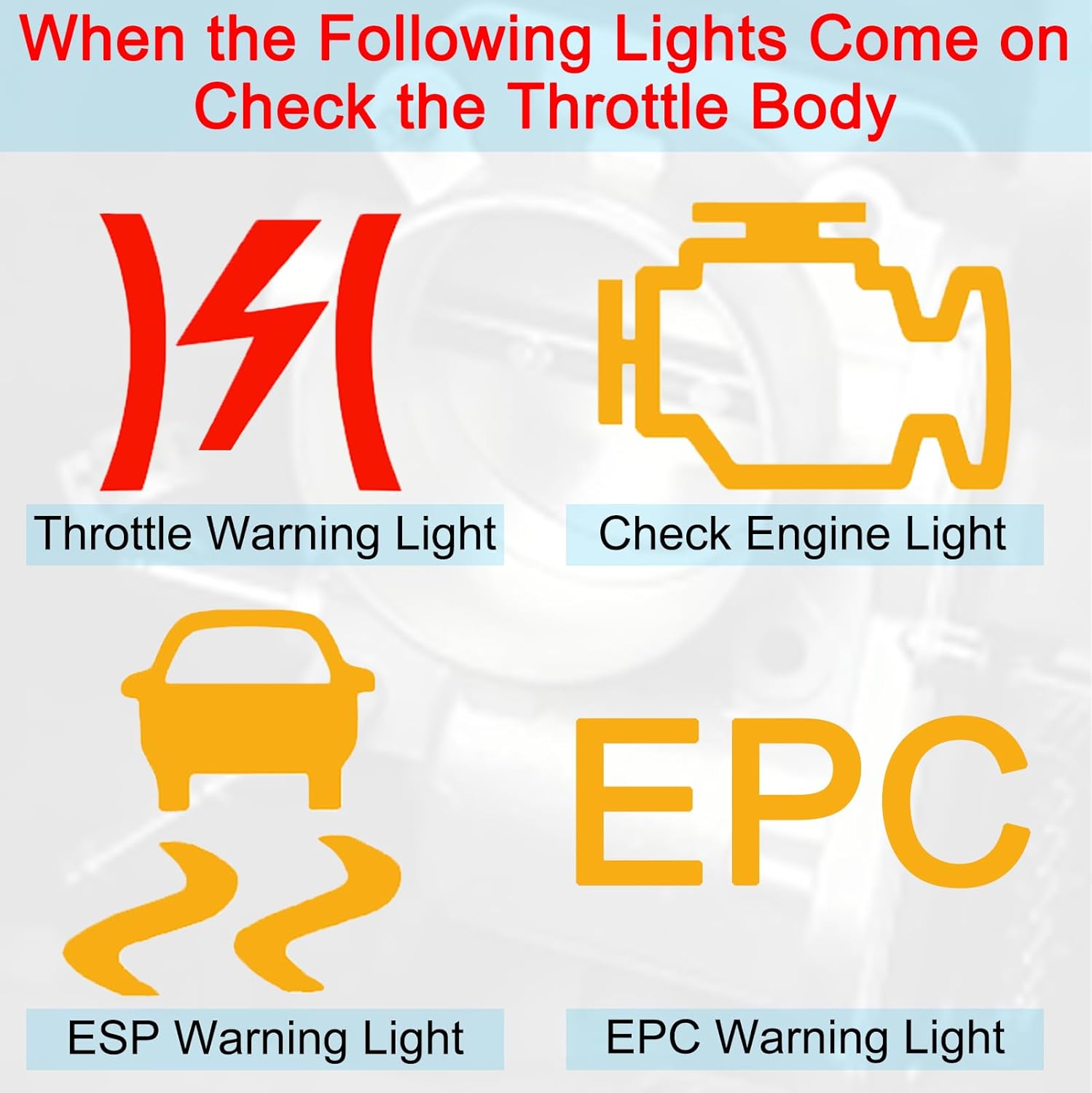 - Quando substituir: Se a luz de aviso do corpo de borboleta eletrônico acender, o motor não ligar, houver falhas no funcionamento, hesitação ou aumento de potência na aceleração, pode haver um problema com o corpo de borboleta eletrônico.