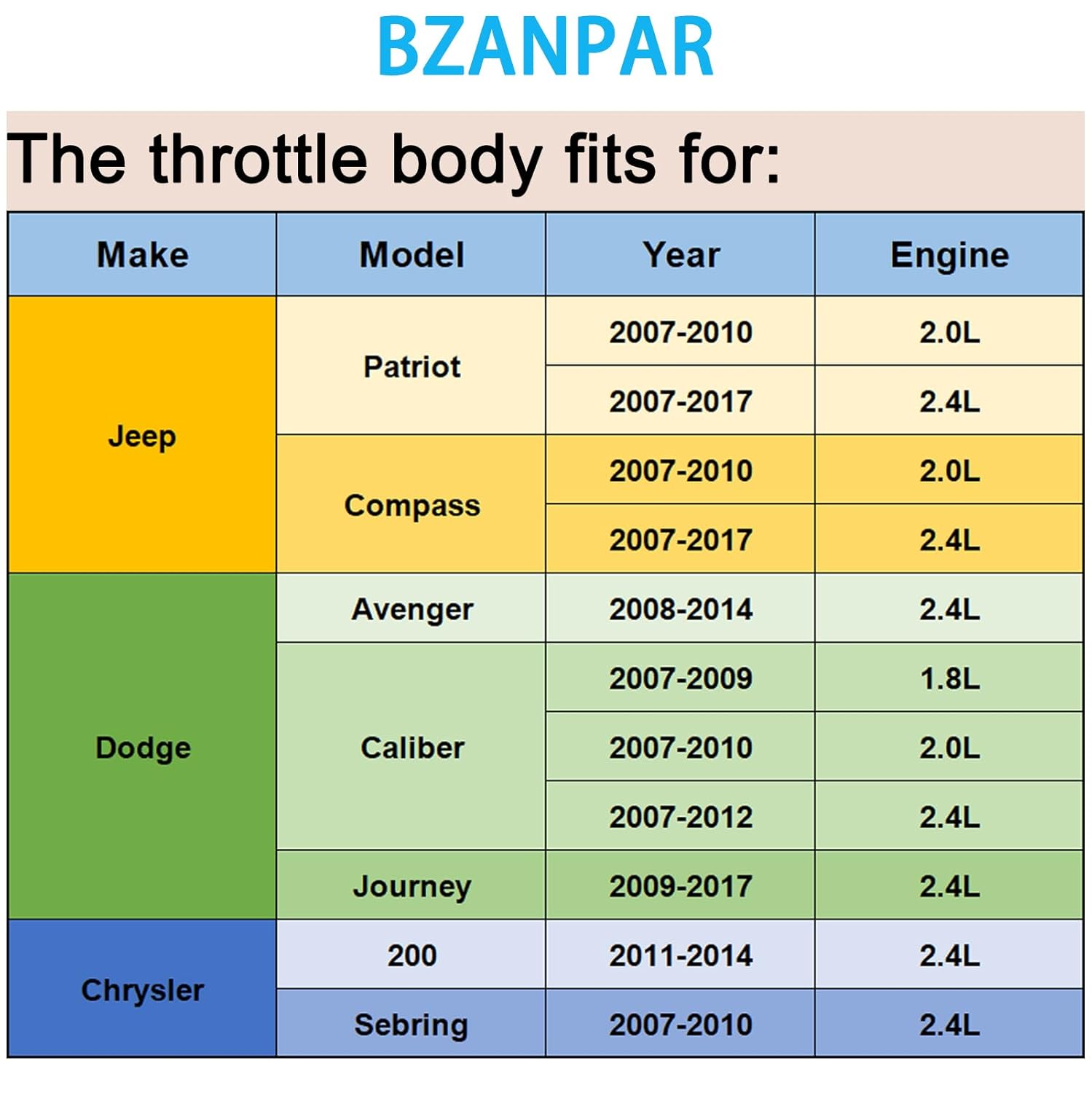 O corpo de borboleta eletrônico BZANPAR é a solução ideal para quem busca desempenho e eficiência em veículos como Jeep Patriot, Compass, Dodge Avenger, Caliber, Journey e Chrysler 200. Este componente é projetado para substituir as peças originais com os números de referência OEM 04891735AC, 4891735AC, 4891735AD, entre outros, garantindo compatibilidade e qualidade superior.