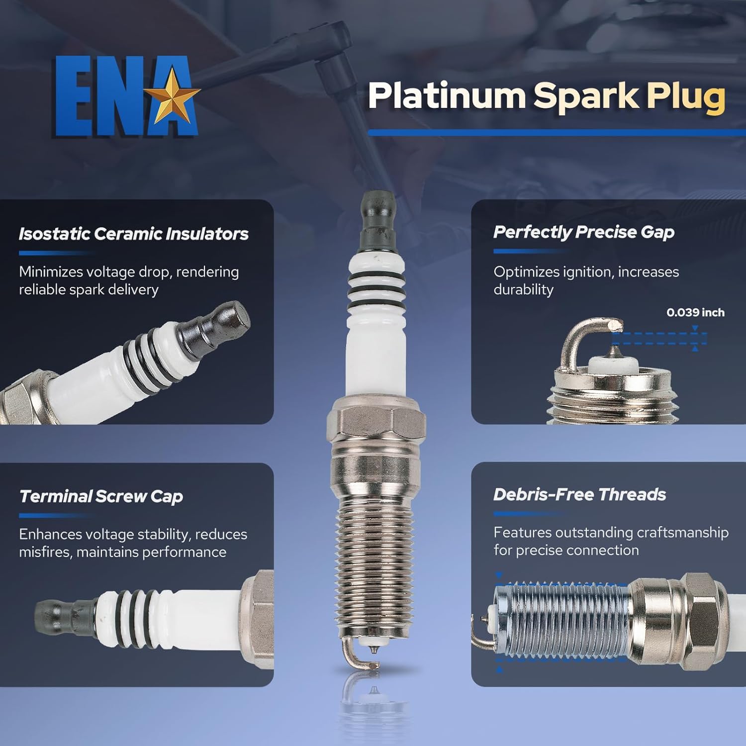 Conjunto ENA de 6 Bobinas de Ignição e 6 Velas de Ignição de Platina, compatível com veículos Lincoln e Ford, incluindo Mustang, Edge, Explorer, F150, Flex, Taurus, Transit, MKS, MKT, MKX e MKZ de 2011 a 2018. Este kit oferece desempenho otimizado, melhorando a eficiência do motor e garantindo partidas mais rápidas. As velas de ignição de platina proporcionam maior durabilidade e resistência ao desgaste, enquanto as bobinas de ignição garantem uma faísca forte e consistente. Ideal para quem busca qualidade e confiabilidade em peças de reposição.