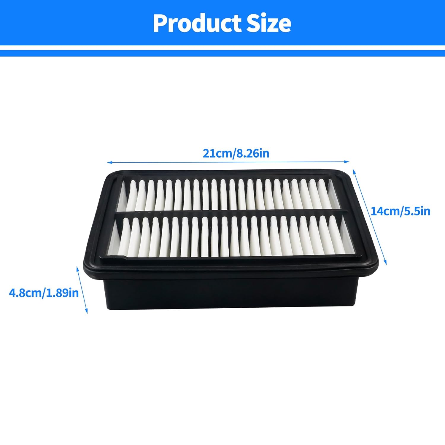 O filtro de ar possui dimensões de 8.26 polegadas x 5.51 polegadas x 1.77 polegadas (21 cm x 14 cm x 4.5 cm). Ele é projetado para se encaixar perfeitamente nos códigos de peça 172206MAJ01, 17220-6MA-J01, LX3763 e WA10124. Recomendamos que você meça o espaço disponível em seu veículo antes de efetuar a compra para garantir um ajuste adequado.