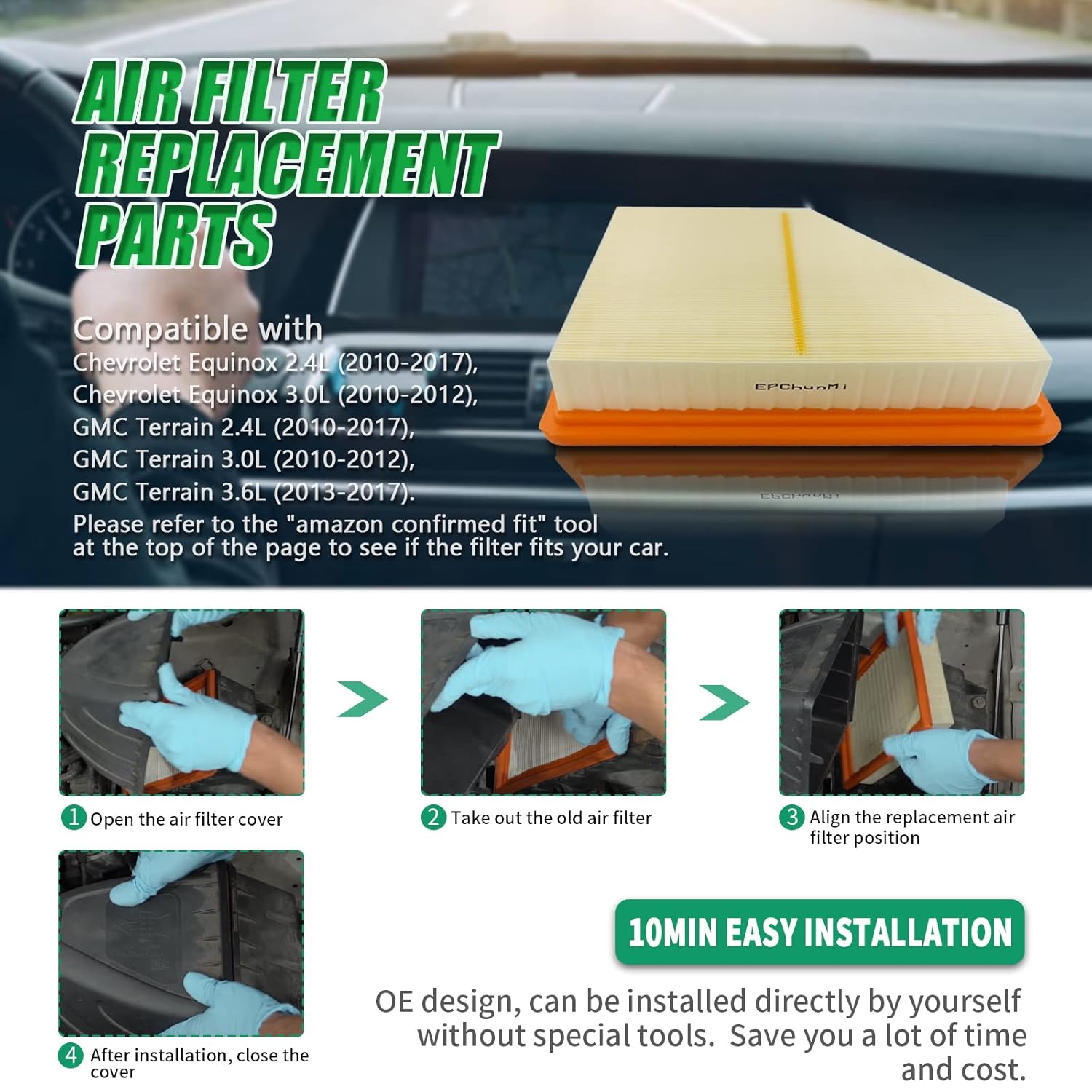 Filtro de Ar do Motor – Substitui CA10465, Compatível com Chevrolet Equinox 2.4L (2010-2017)