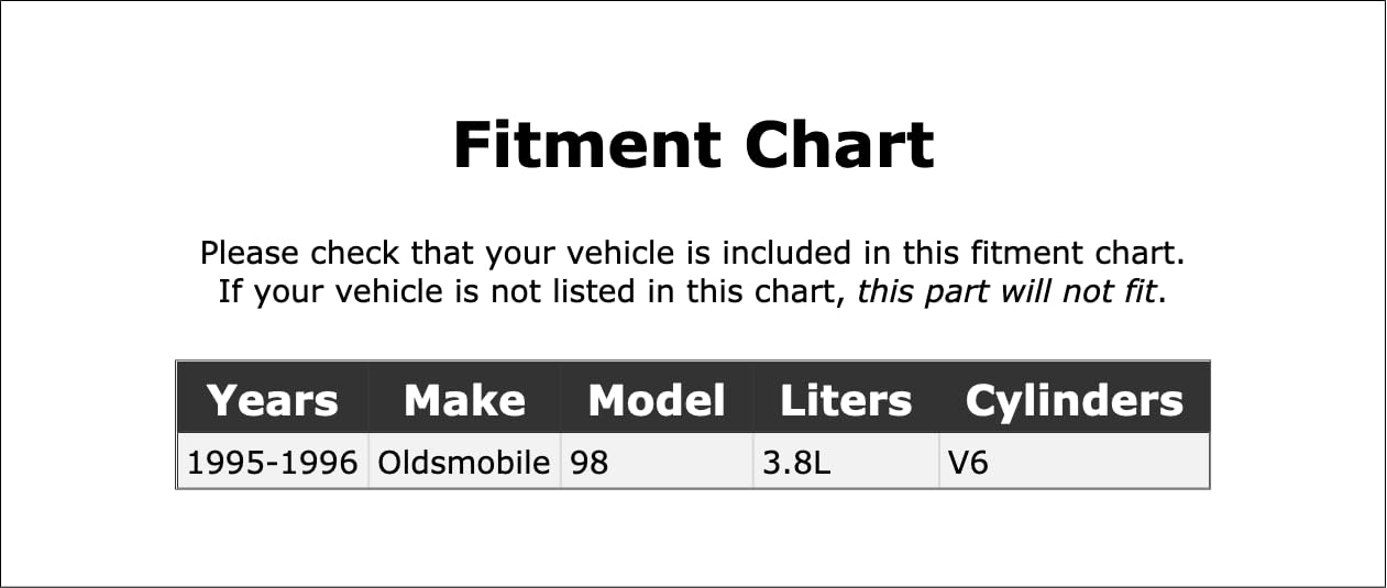 – Compatibilidade: Projetado especificamente para Oldsmobile 98 3.8L V6 26 VIN 1995 1996.