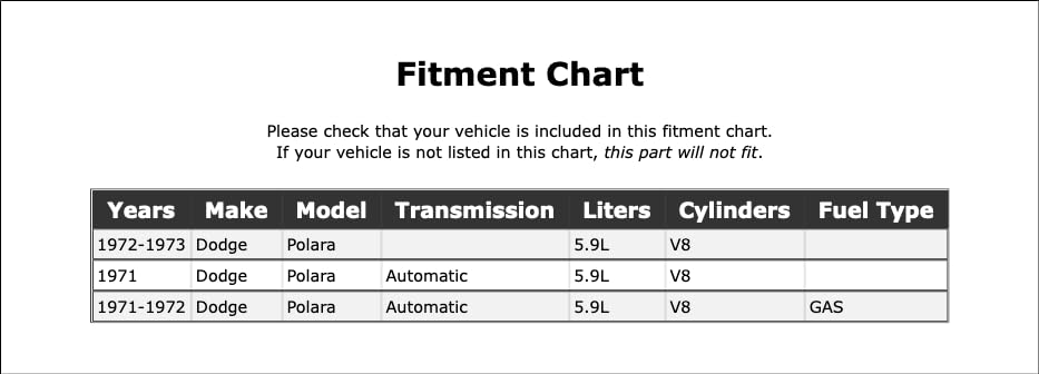 – Compatibilidade: Projetado especificamente para Dodge Polara 5.9L V8 (1971-1973).