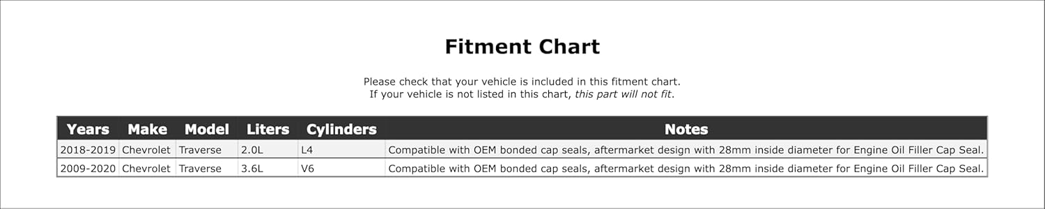 O Selante do Tampa do Filtro de Óleo do Motor é um componente essencial para garantir o desempenho ideal do seu Chevrolet Traverse, abrangendo os anos de 2010 a 2020. Este produto inclui 1 (uma) tampa de selante do filtro de óleo do motor, projetada especificamente para se encaixar perfeitamente em uma variedade de modelos, conforme detalhado na tabela de compatibilidade da galeria de imagens.