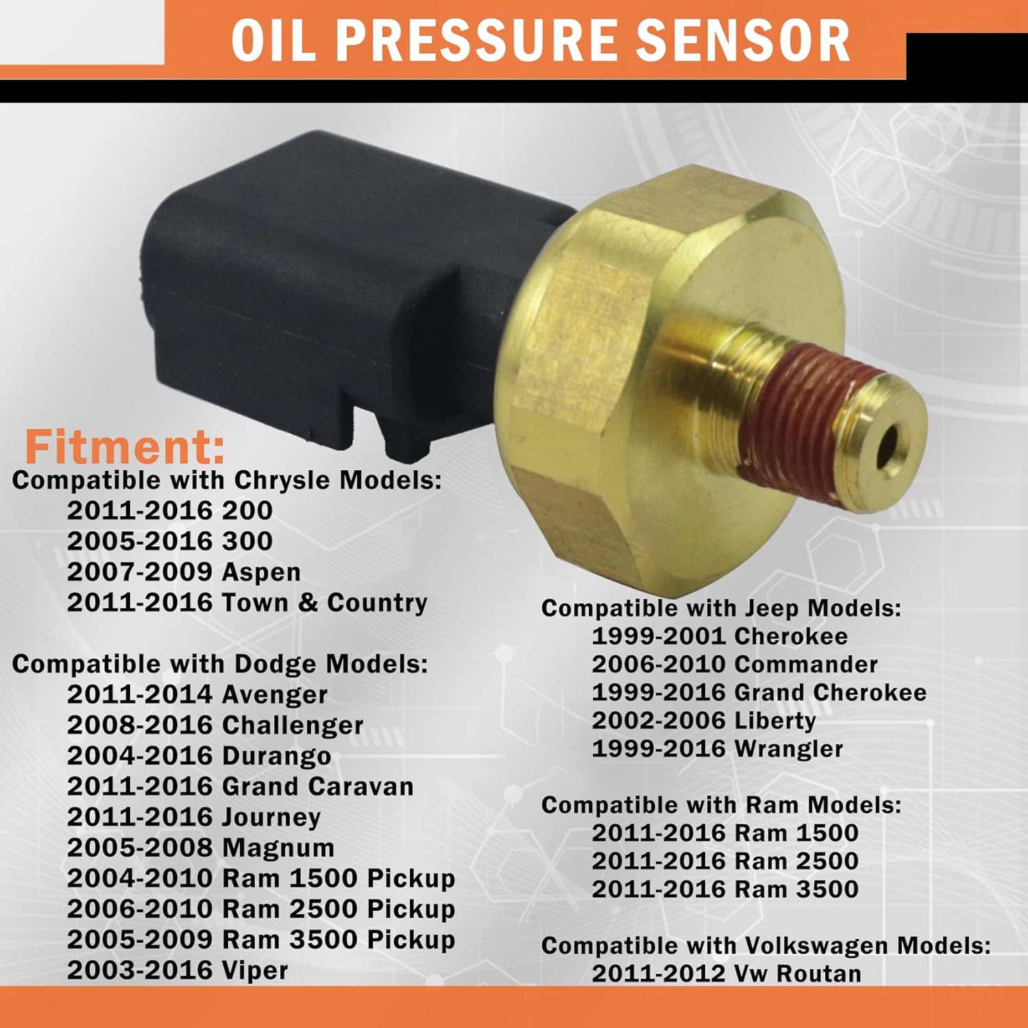 Sensor de Pressão de Óleo do Motor para Chrysler 200, Dodge Challenger, Ram, Jeep Cherokee, Wrangler e VW Routan - Modelos 5149062AA, 5149062AB, 56028807AA