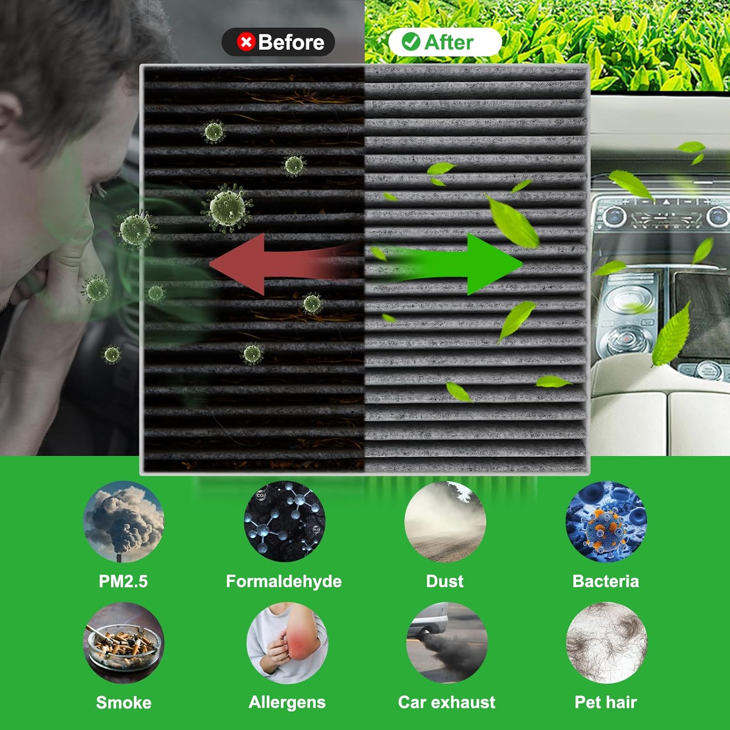 Além disso, a eficiência do sistema HVAC (aquecimento, ventilação e ar condicionado) é significativamente melhorada com a troca regular do filtro de ar da cabine, recomendada anualmente ou a cada 12.000 milhas. A instalação é simples e rápida, levando apenas de 5 a 8 minutos, sem necessidade de modificações, o que representa uma economia de tempo e dinheiro em comparação com a visita a uma concessionária.