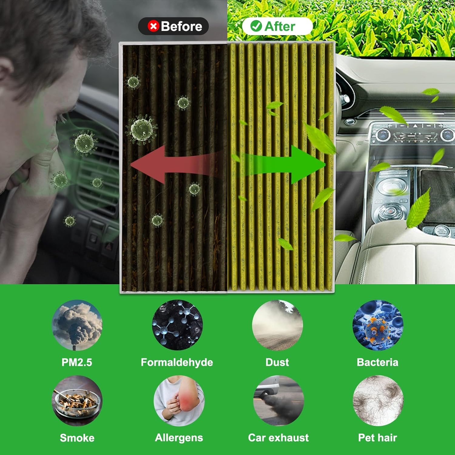 Os filtros DacallAuto são projetados com uma tecnologia de tripla filtragem, que combina uma estrutura de filtragem em quatro camadas, carvão ativado de casca de coco e uma mescla de microfibra e tecido HEPA. Essa combinação não apenas absorve gases nocivos e odores desagradáveis, mas também isola mais de 99% das partículas de poeira, oferecendo proteção abrangente e um ambiente de respiração fresco e saudável.