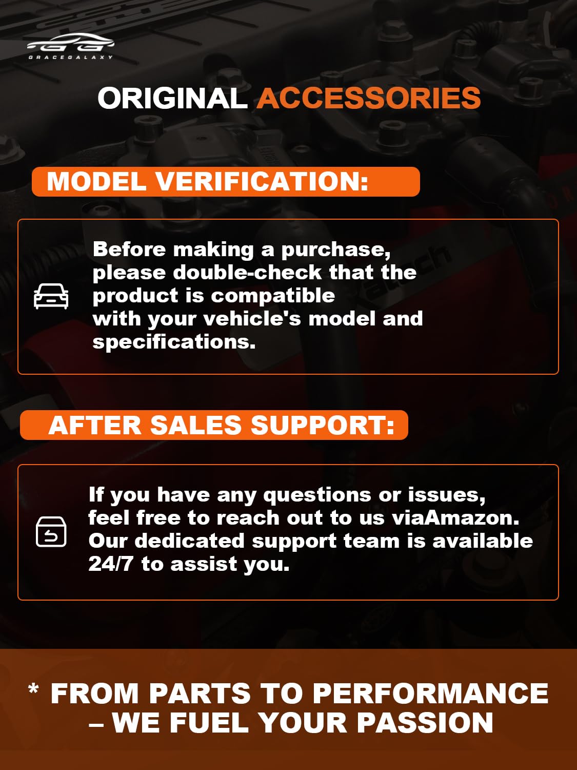 O kit é projetado para facilitar a instalação, incluindo uma tampa de válvula esquerda, uma junta e uma tampa de óleo, tudo em um único pacote conveniente. Além disso, oferecemos suporte ao cliente dedicado; caso tenha dúvidas ou preocupações, basta nos contatar através da Amazon. Com uma garantia de um ano sem limite de quilometragem, a Grace Galaxy se compromete a cuidar de cada cliente.