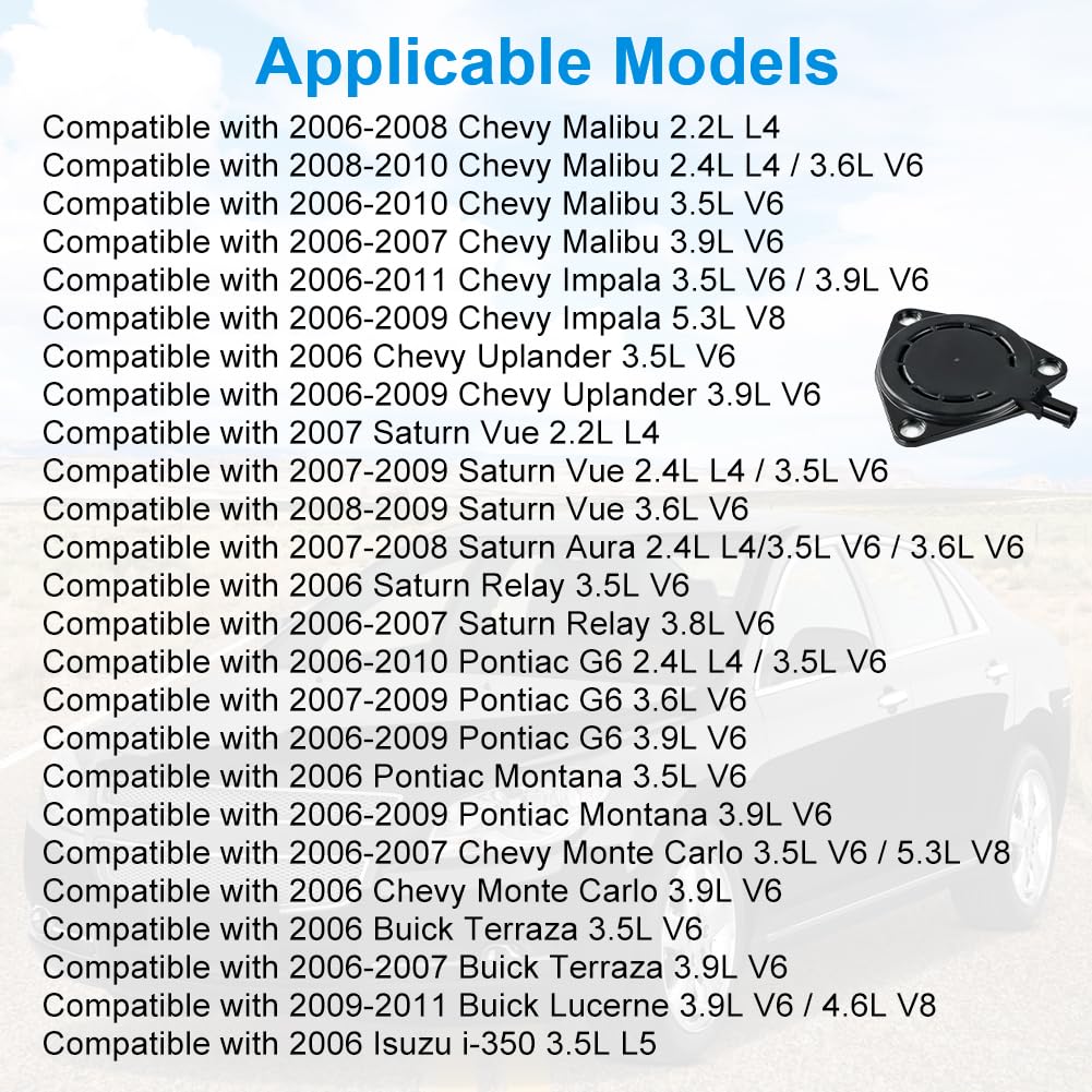 O solenoide de substituição do VVT (Variable Valve Timing) é um componente essencial para otimizar o desempenho do motor em diversos veículos, como Buick Lucerne, Terraza, Pontiac G6, Montana, Chevy Impala, Monte Carlo e Uplander. Este solenoide foi meticulosamente projetado para substituir as peças OEM com os números de parte 12579542, 12589784, 12609557, 14159641, 917-298 e 917298, garantindo compatibilidade e eficiência superiores.