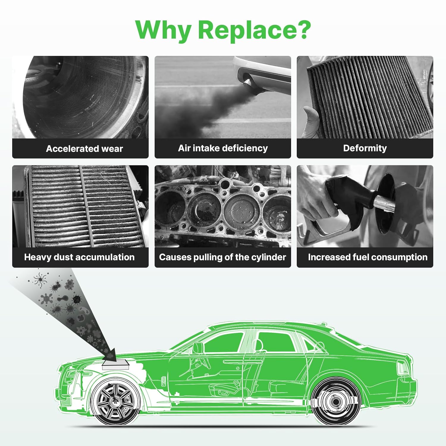 O filtro de ar do motor substitui as referências CA12290 e 17220-6A0-A00. O filtro de ar da cabine substitui CF10134 e CP134. É importante confirmar a compatibilidade com seu veículo antes de realizar o pedido.