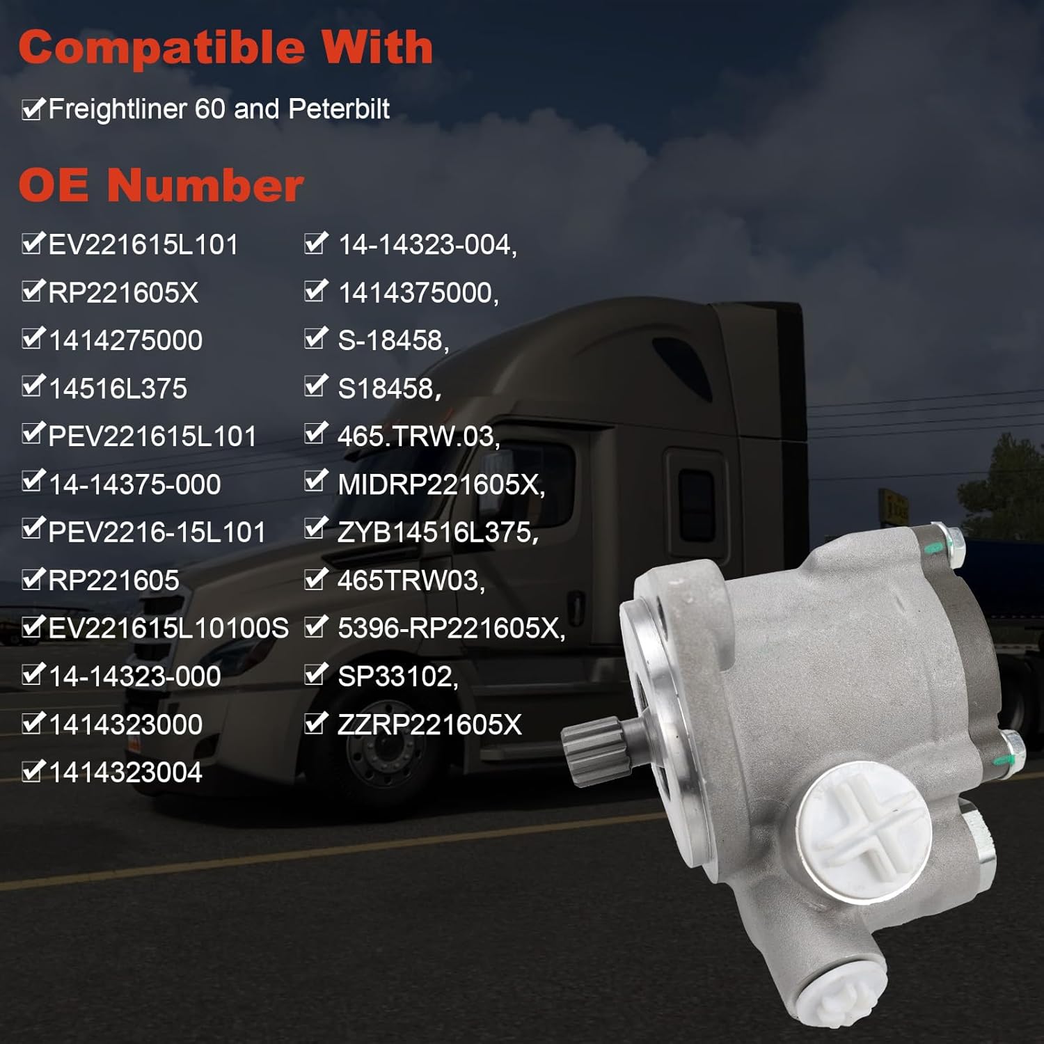 Bomba de Direção Hidráulica EV221615L101 Compatível com Freightliner 60, Peterbilt Haldex e Kenworth 14-14375-001