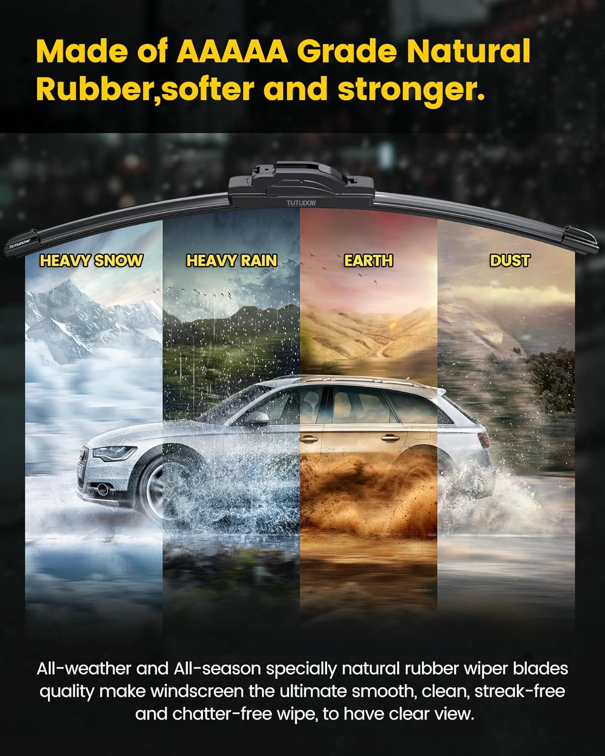 As palhetas de limpador TUTUDOW são projetadas para todas as condições climáticas, garantindo um movimento suave, limpo e sem manchas, proporcionando uma visão clara em qualquer situação. Comprovadas em milhões de testes de durabilidade, a instalação é fácil e rápida, levando apenas alguns segundos.