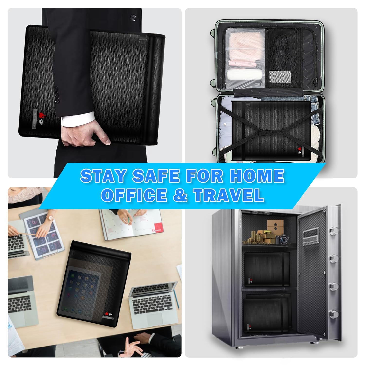 Das Set, bestehend aus zwei Taschen in den Größen S und M, bietet genug Platz für eine Vielzahl von Geräten, und die schwarze Farbe sorgt für ein unauffälliges und elegantes Design. Der zusätzliche Vorteil der Wasserdichtigkeit und Feuerfestigkeit macht diese Taschen zu einem robusten Schild gegen physische und digitale Bedrohungen.