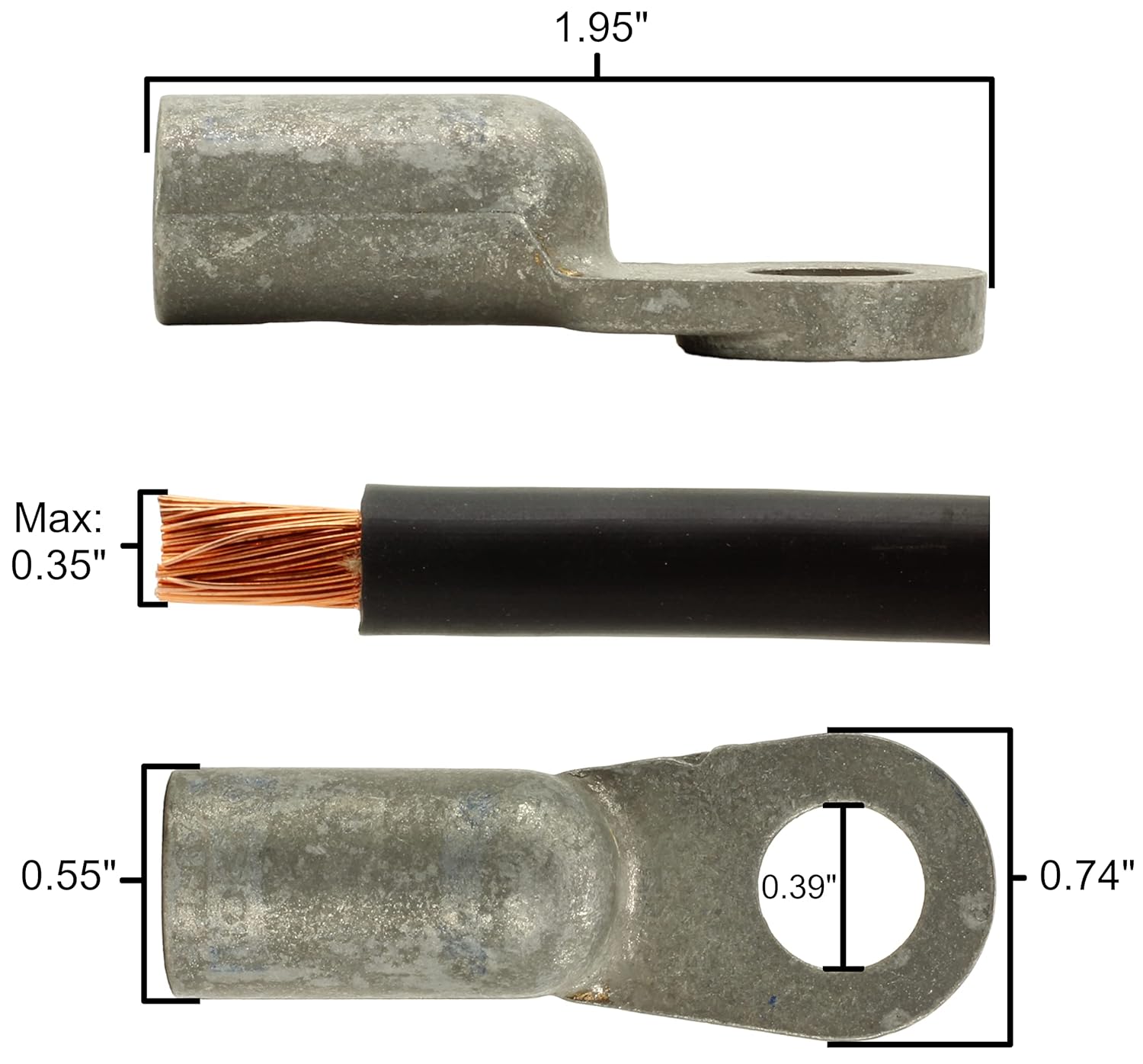 – Lugs de 3/8″: Projetados para baterias de poste lateral ou terminais de bateria, garantindo compatibilidade e facilidade de uso.