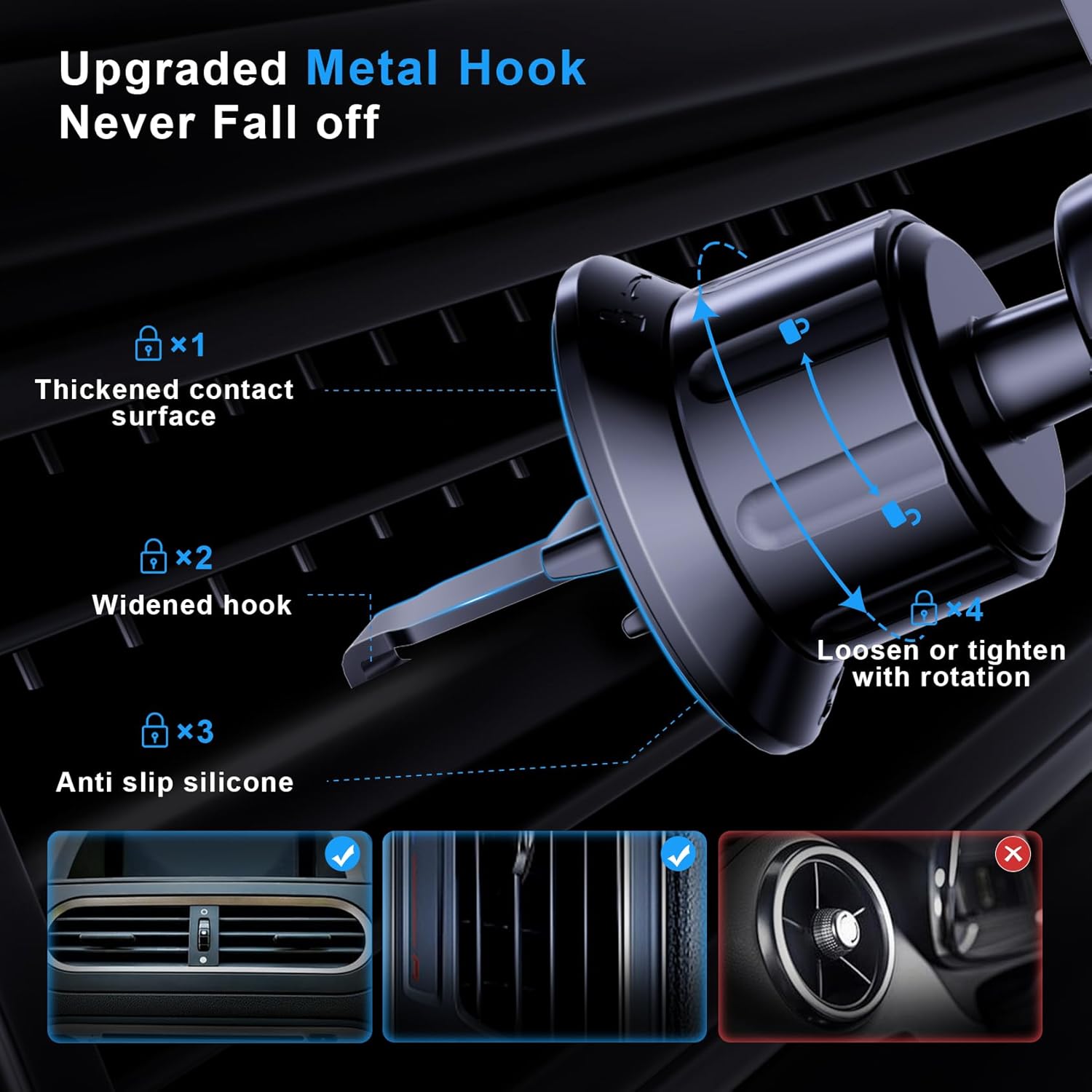 This is my second phone mount. I had purchased another type, which did not last more than 8 months because the suction did not work with the summer heat. So I decided to try another type with this one. I was particularly interested in the vent clip, since the previous suction has melted in the heat. Unfortunately, when I installed it on my car vent, it did not stay and would constantly fall off the vent as I was driving, which was super annoying. It was installed properly though, but it is too flimsy to hold the phone properly. I’d then have to stop and constantly readjust it. In the end, I removed it and have decided to try this thing using the suction instead of the vent clip. I have not used it yet, I just installed it today with the suction, so I’ll see how it holds up when driving. As we are going into the summer months though, I think that it’ll also melt in the heat. I purchased new sticky pads so that I am prepared to replace them should they melt away. For those of us who live in warmer climates, I’m not sure that it’ll last. Overall, I would not buy it again, especially at the price I paid then, which was not right imo.