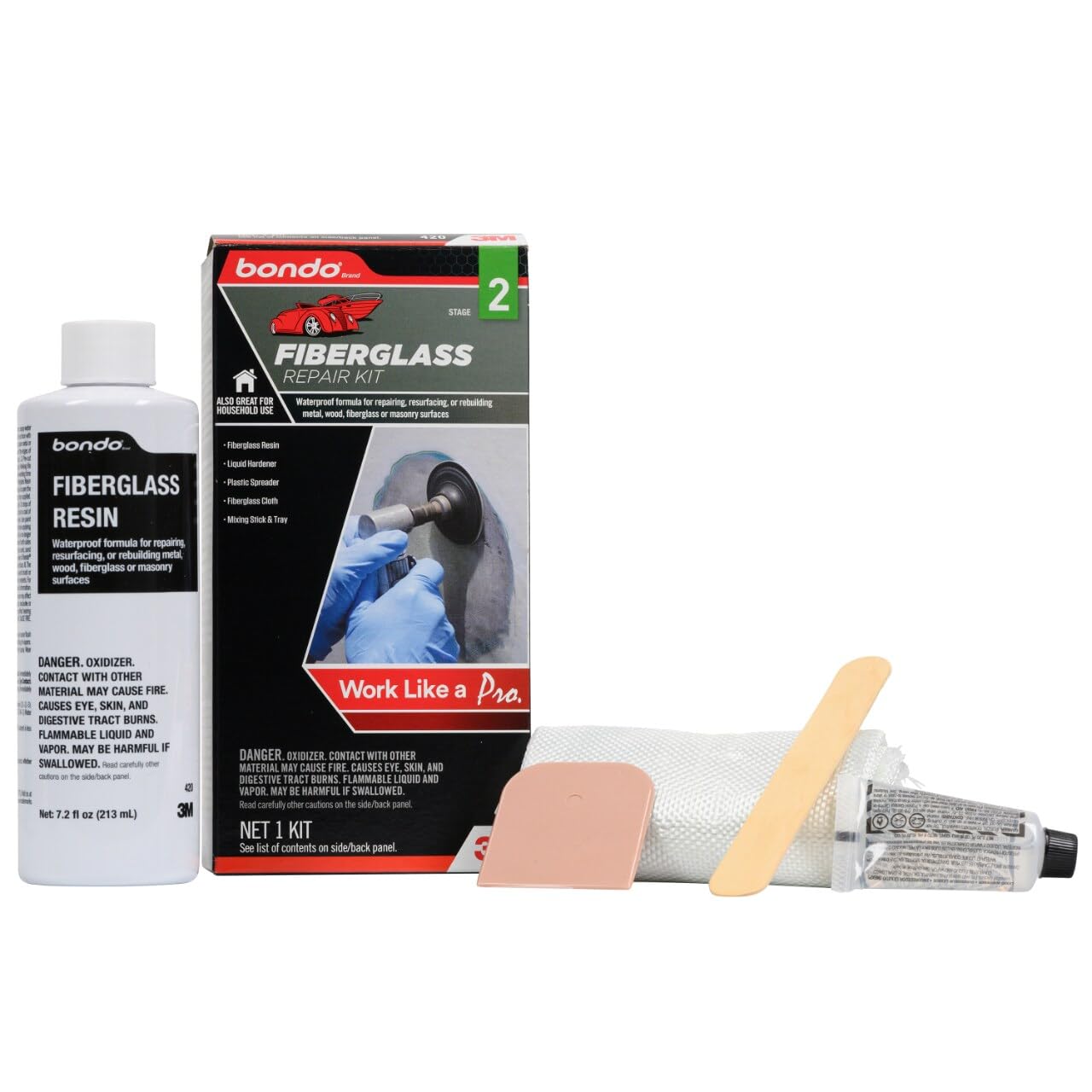A fórmula versátil deste kit adere a uma variedade de superfícies, incluindo fibra de vidro, madeira, metal e concreto. Restaure a fibra de vidro de barcos danificados, repare carrocerias de automóveis, conserte pranchas de surf, calhas ou banheiras – um único kit é capaz de lidar com todas essas situações. Forma um patch reforçado por fibras na maioria das superfícies, garantindo resistência e durabilidade.