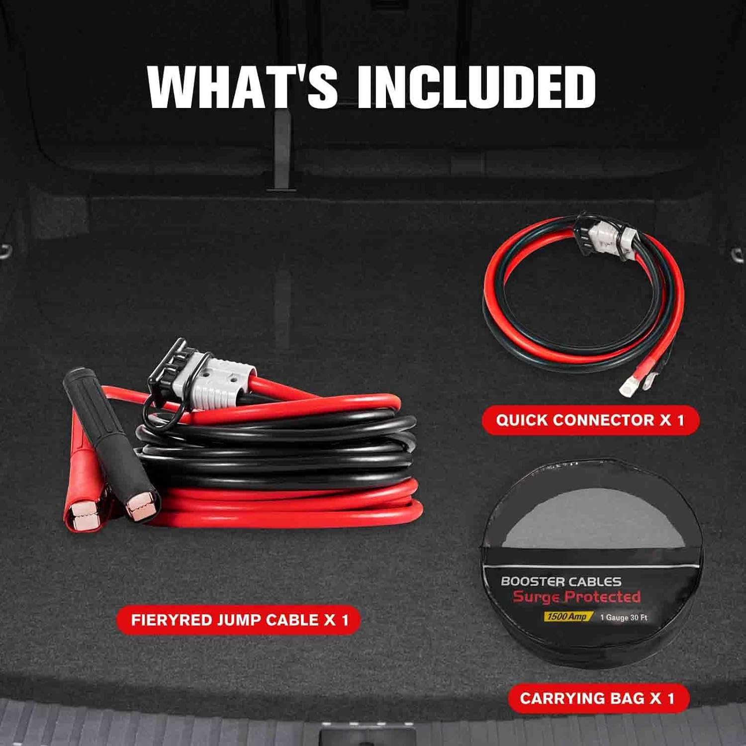 Descrição do Produto: FIERYRED 1 Gauge 30 FT Quick Connect Jumper Cables