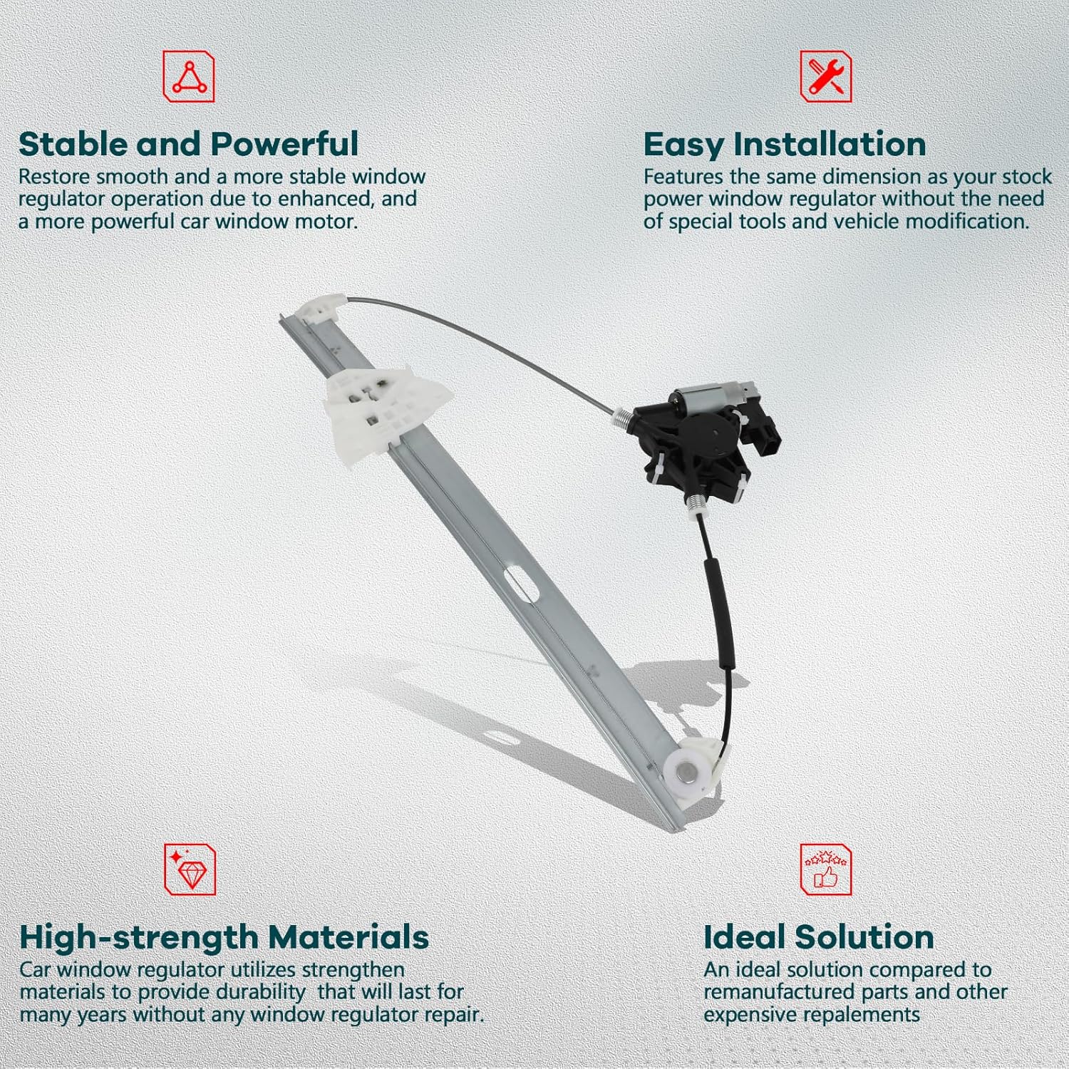 - Confiabilidade: Construído de acordo com os padrões OE, o regulador de janela elétrica desliza de forma rápida e silenciosa. Ele passou por testes rigorosos, sendo acionado milhares de vezes em portas de veículos reais para garantir sua durabilidade e eficiência.