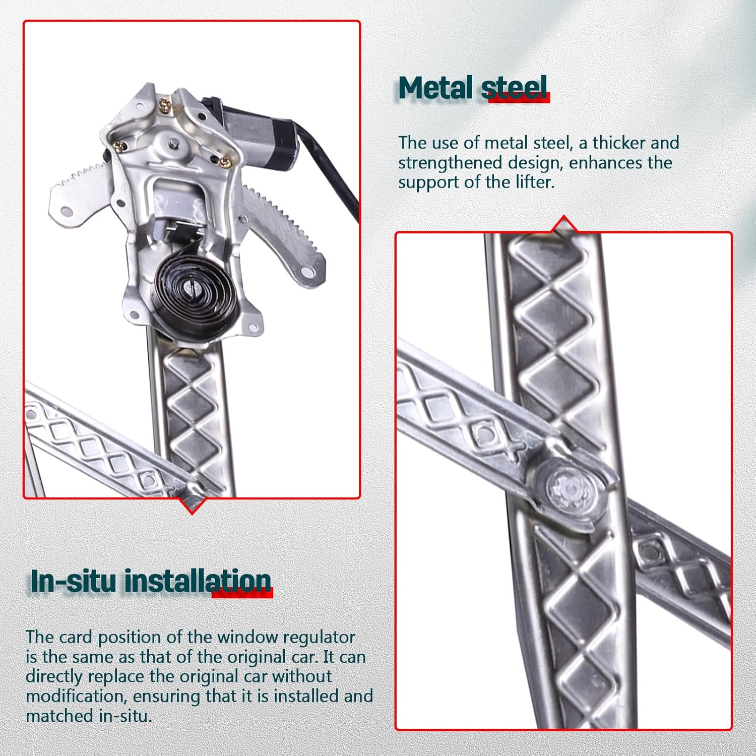 O motor da janela frontal esquerda é fabricado com fio de aço espesso e placa de aço, proporcionando uma capacidade de carga superior. Sua construção robusta garante que o regulador funcione de maneira suave e eficiente, mesmo sob condições adversas.
