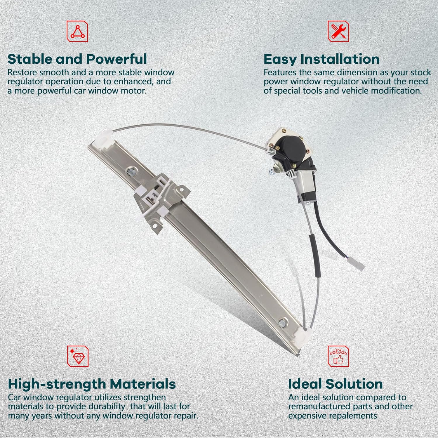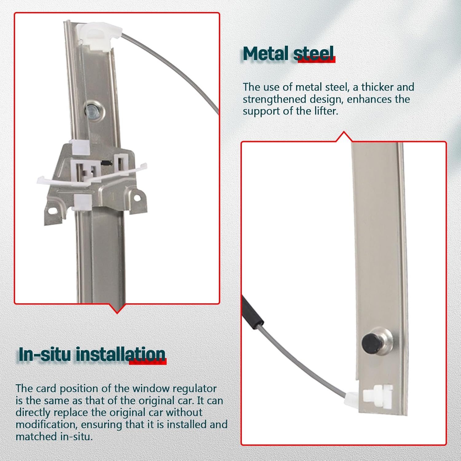 - REINFORCED COMPONENTS: O motor da janela dianteira esquerda é feito de fio de aço espesso e placa de aço, que possui uma capacidade de carga mais forte, é resistente e firme, além de operar suavemente.