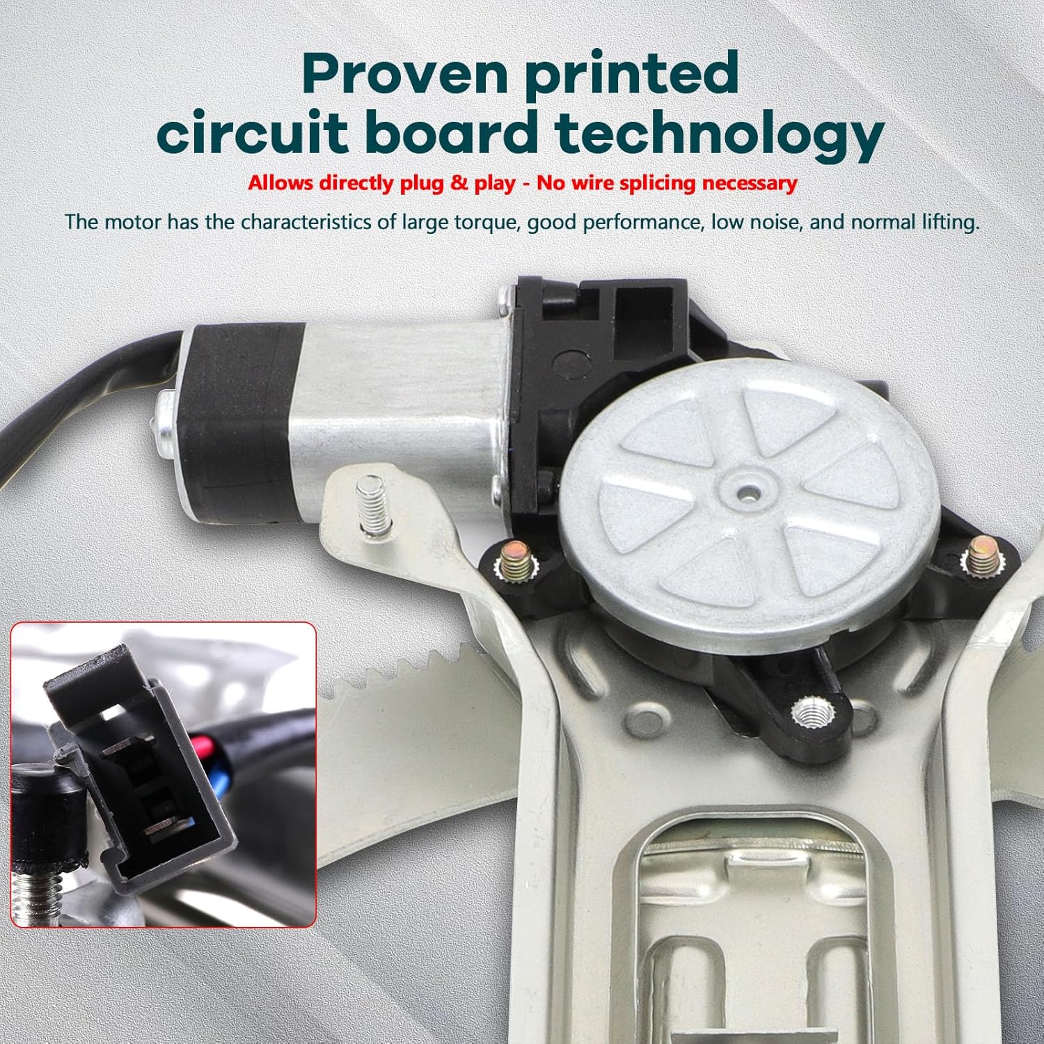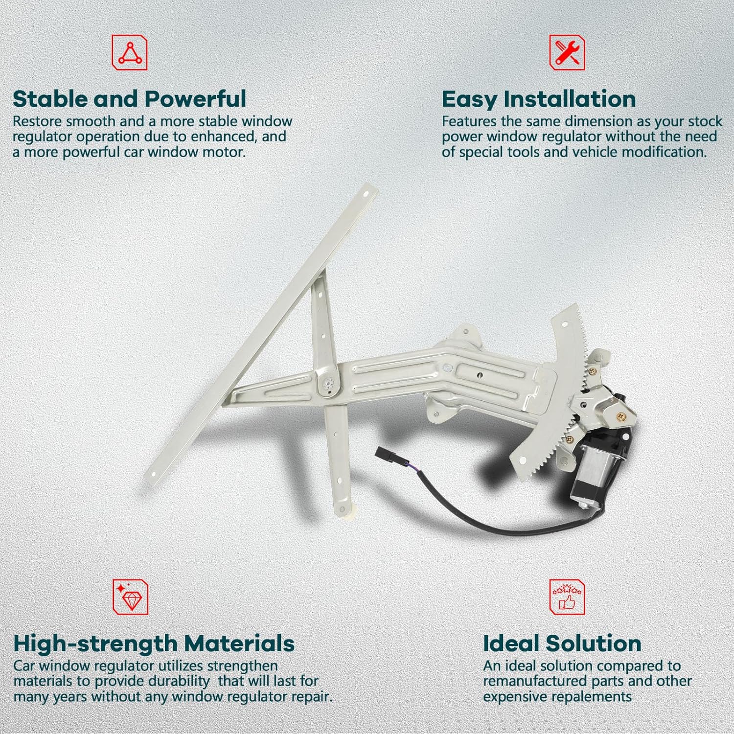 Componentes Reforçados: O motor da janela do lado direito é fabricado com fio de aço espesso e placa de aço, proporcionando uma capacidade de carga superior. Sua construção robusta garante que o regulador funcione de maneira suave e eficiente, mesmo sob condições adversas.