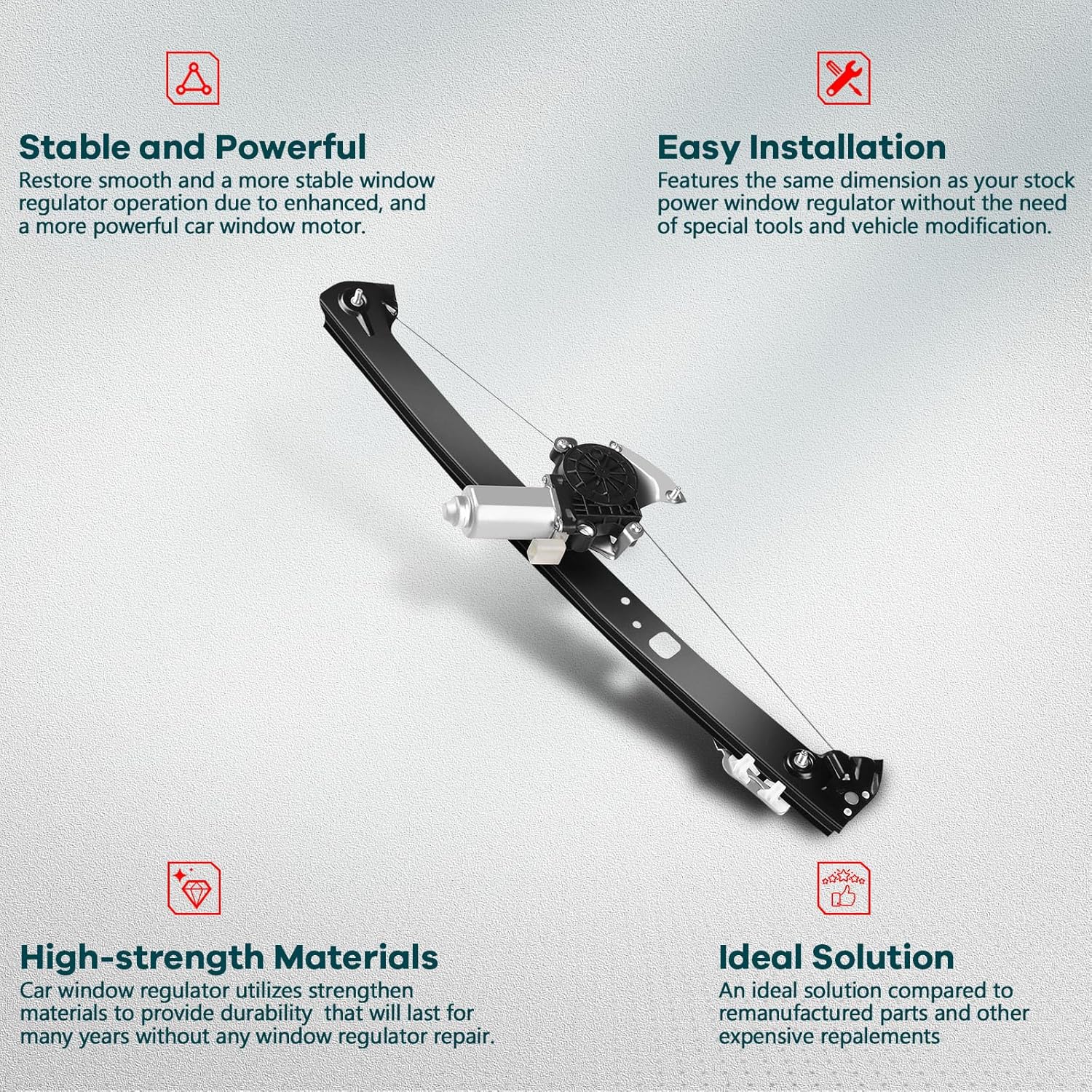 Componentes Reforçados: O motor do regulador de janela traseiro esquerdo é fabricado com fio de aço espesso e placa de aço, proporcionando uma capacidade de carga superior. Sua construção robusta garante que o regulador funcione de maneira suave e eficiente, mesmo sob condições adversas.
