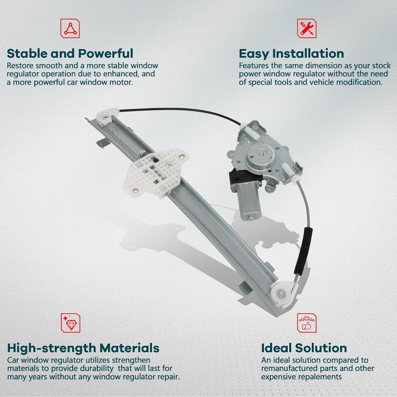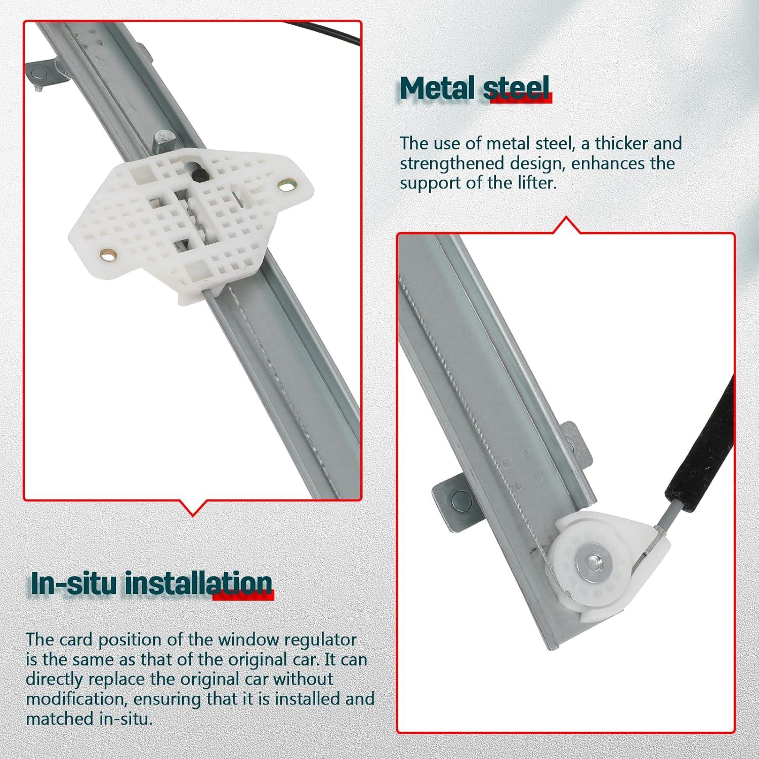 O motor da janela traseira esquerda é construído com fios de aço espessos e placas de aço, oferecendo uma capacidade de carga superior. Essa robustez garante que o regulador seja resistente e funcione de maneira contínua e sem falhas.