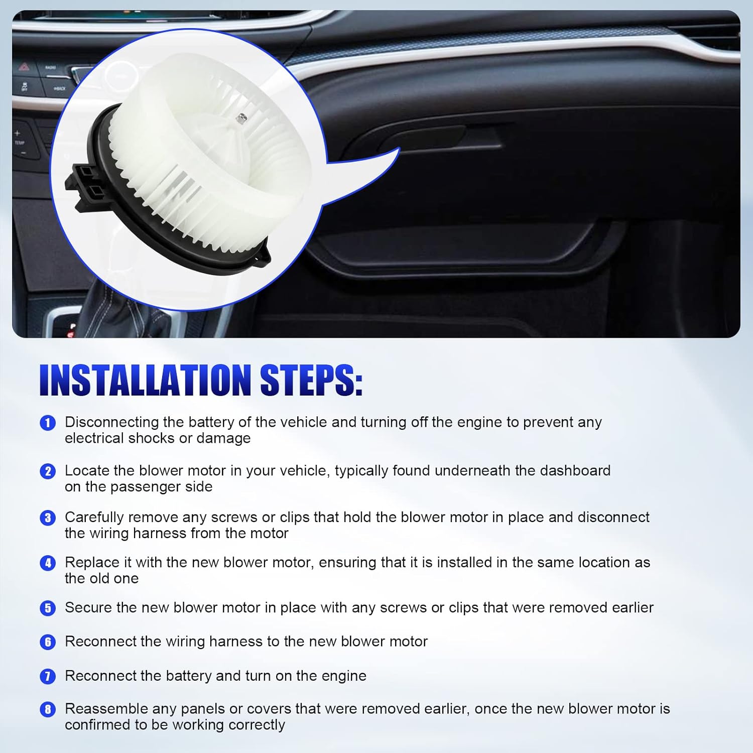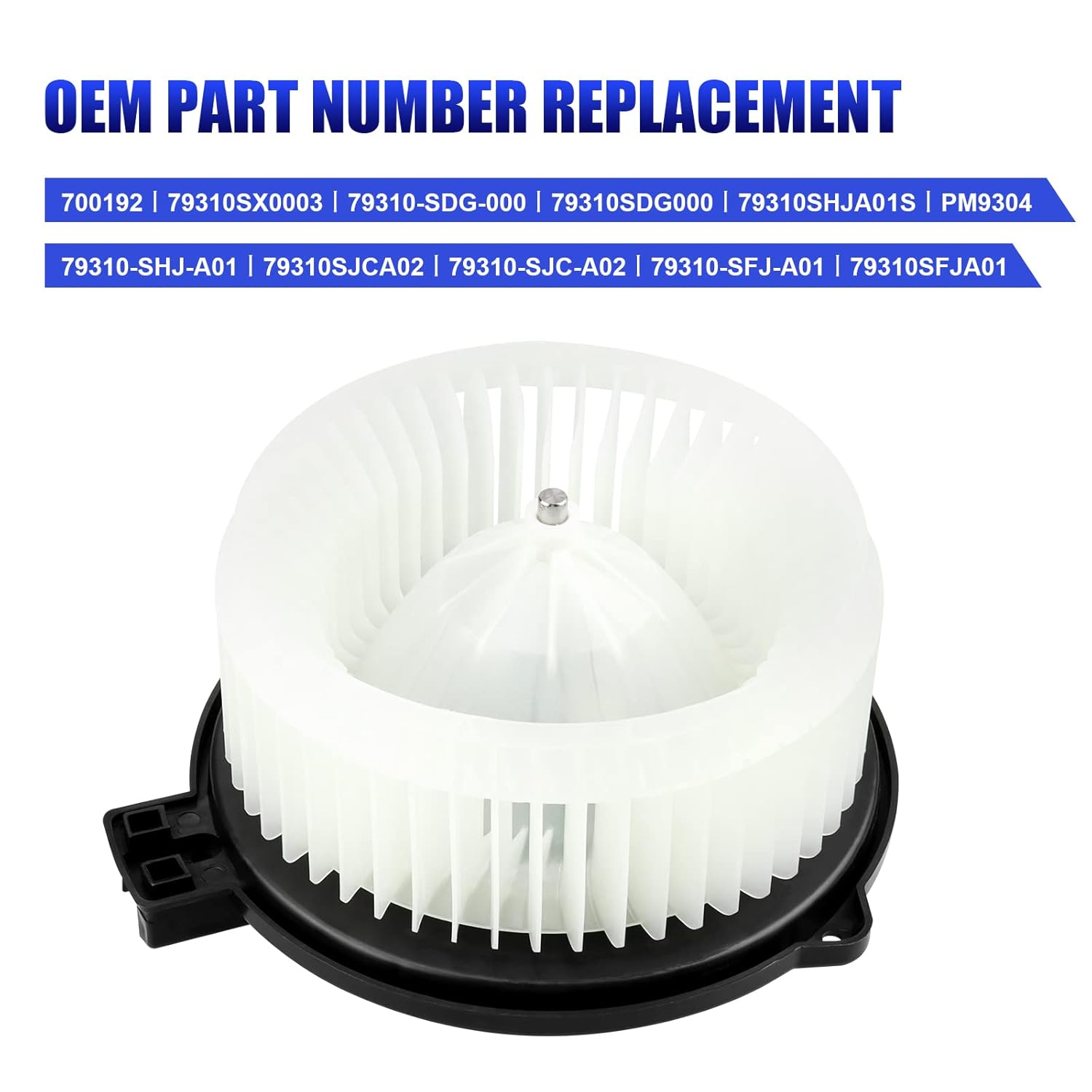 - Substituição de Número de Peça: 700192, 79310SDG000, 79310SHJA01, 79310SJCA02, 79310SFJA01, PM9304. O design OEM do motor do ventilador de ar condicionado permite uma instalação fácil, sem necessidade de ferramentas especiais.