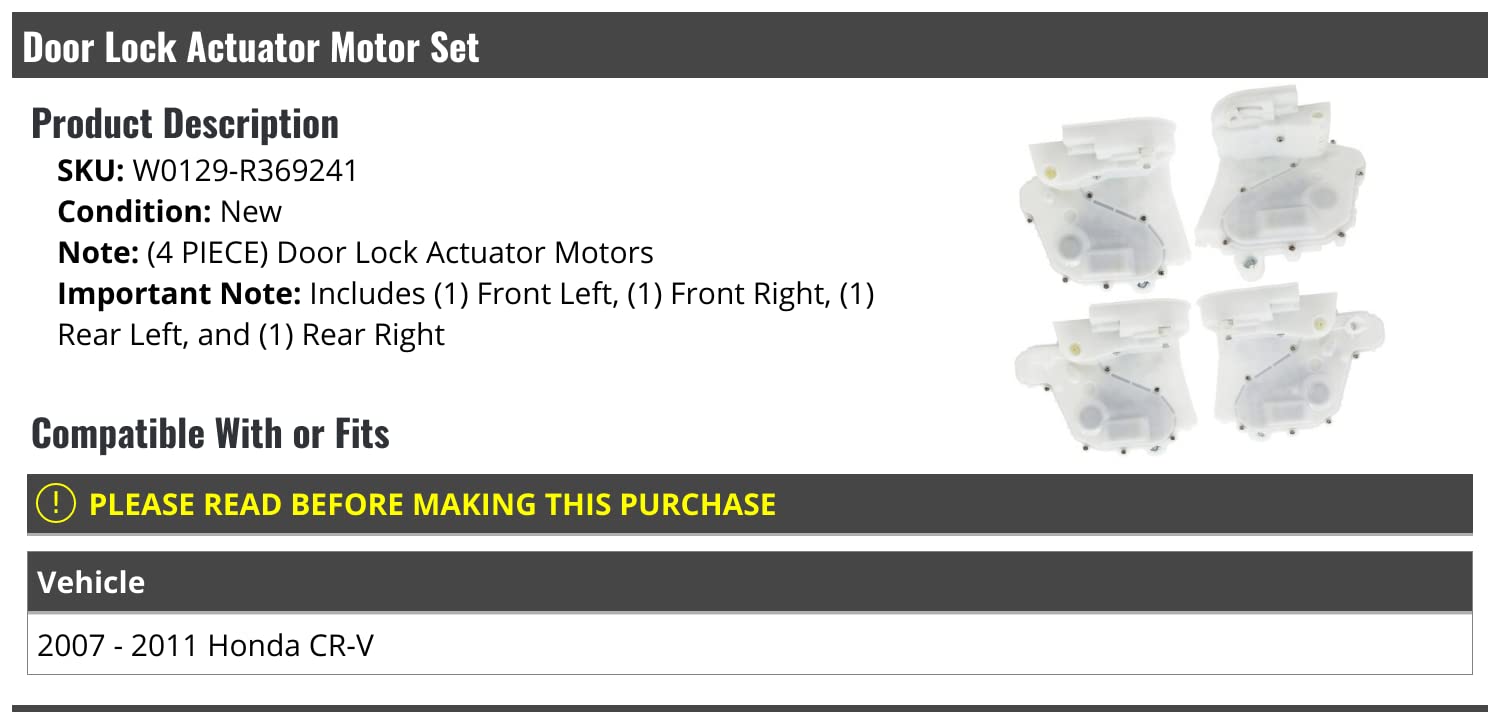 Descrição do Produto: Conjunto de Motores de Atuador de Fechadura de Porta Dianteira e Traseira – Compatível com Honda CR-V 2007-2011