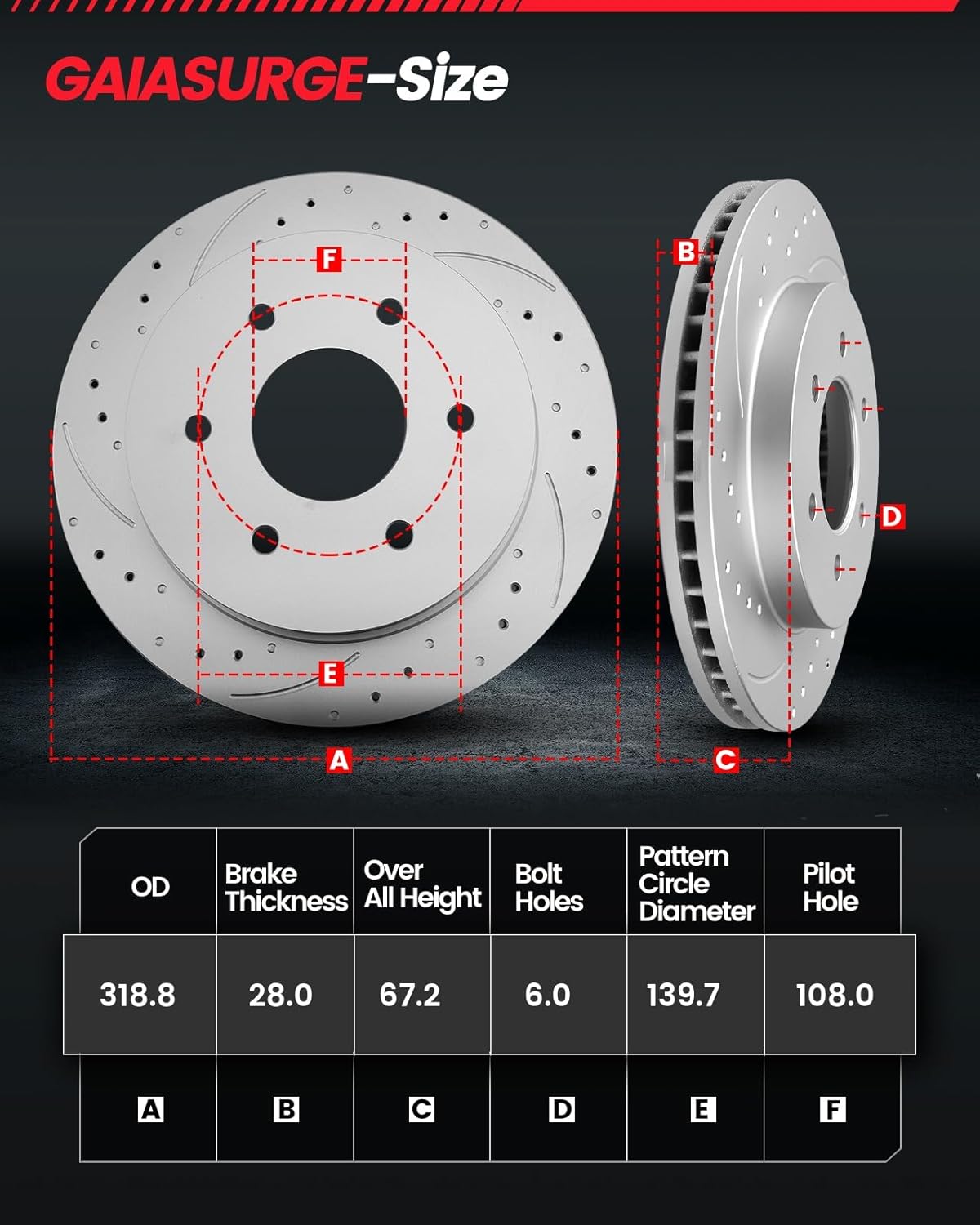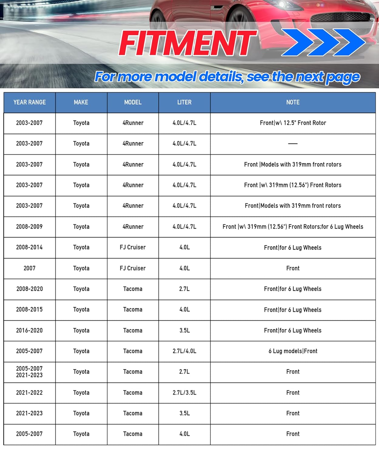 O Kit de Substituição de Freios GAIASURGE é a escolha ideal para quem busca desempenho e segurança em veículos Toyota. Compatível com modelos de 2005 a 2023 da Toyota Tacoma (modelos de 6 furos) e de 2003 a 2009 da Toyota 4Runner (apenas para rodas de 16″), além de ser adequado para o Toyota FJ Cruiser de 2007 a 2014, este kit é projetado para oferecer uma experiência de condução superior.