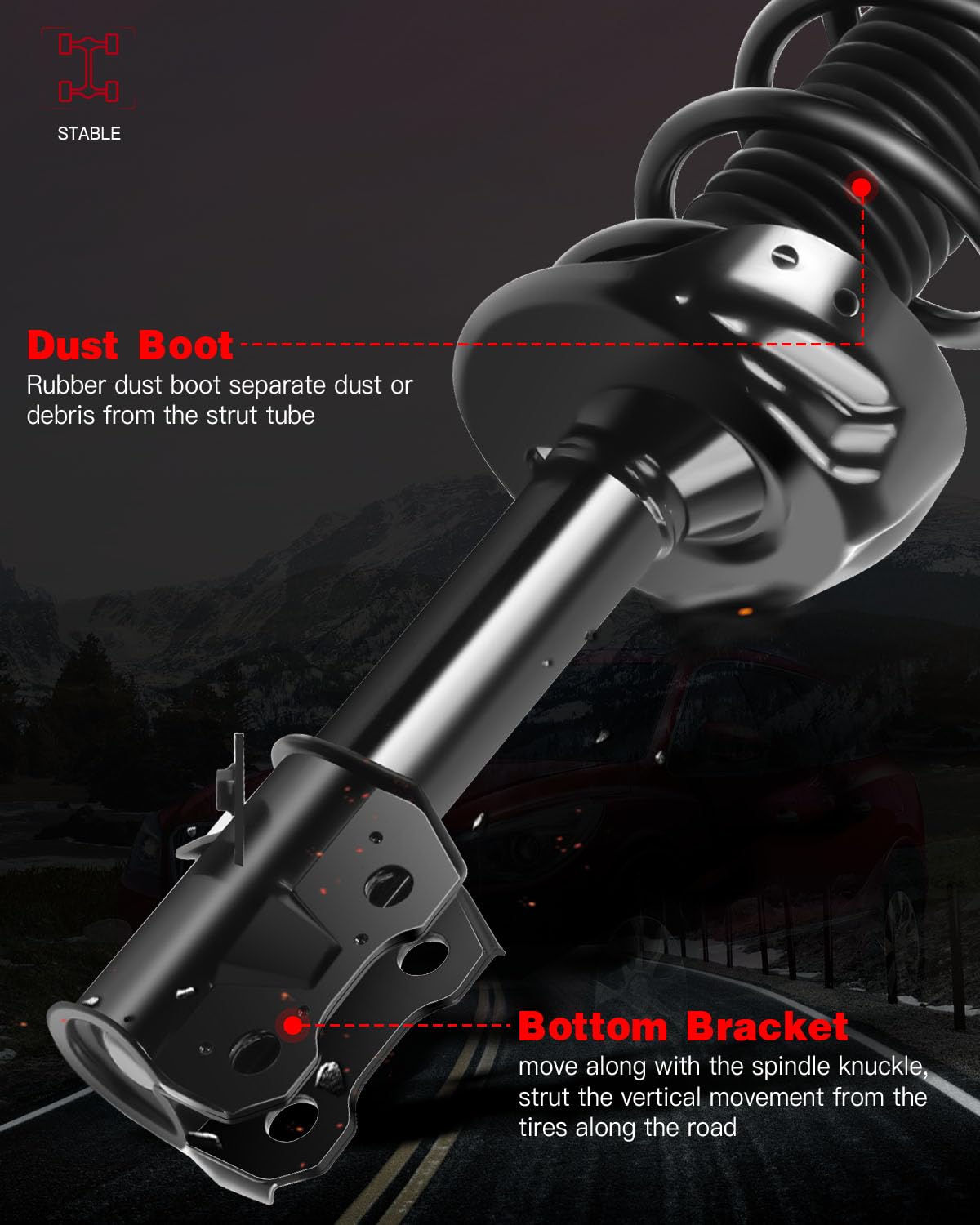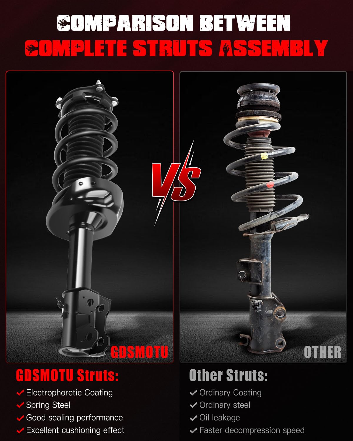 Para instalar os Front Complete Struts, comece levantando o veículo e removendo as rodas dianteiras. Em seguida, desconecte os struts antigos, soltando os parafusos de fixação na parte superior e inferior. Instale os novos struts GDSMOTU na mesma posição, garantindo que todos os parafusos estejam bem apertados. Após a instalação, verifique o alinhamento das rodas e faça um teste de condução para garantir que a suspensão esteja funcionando corretamente.