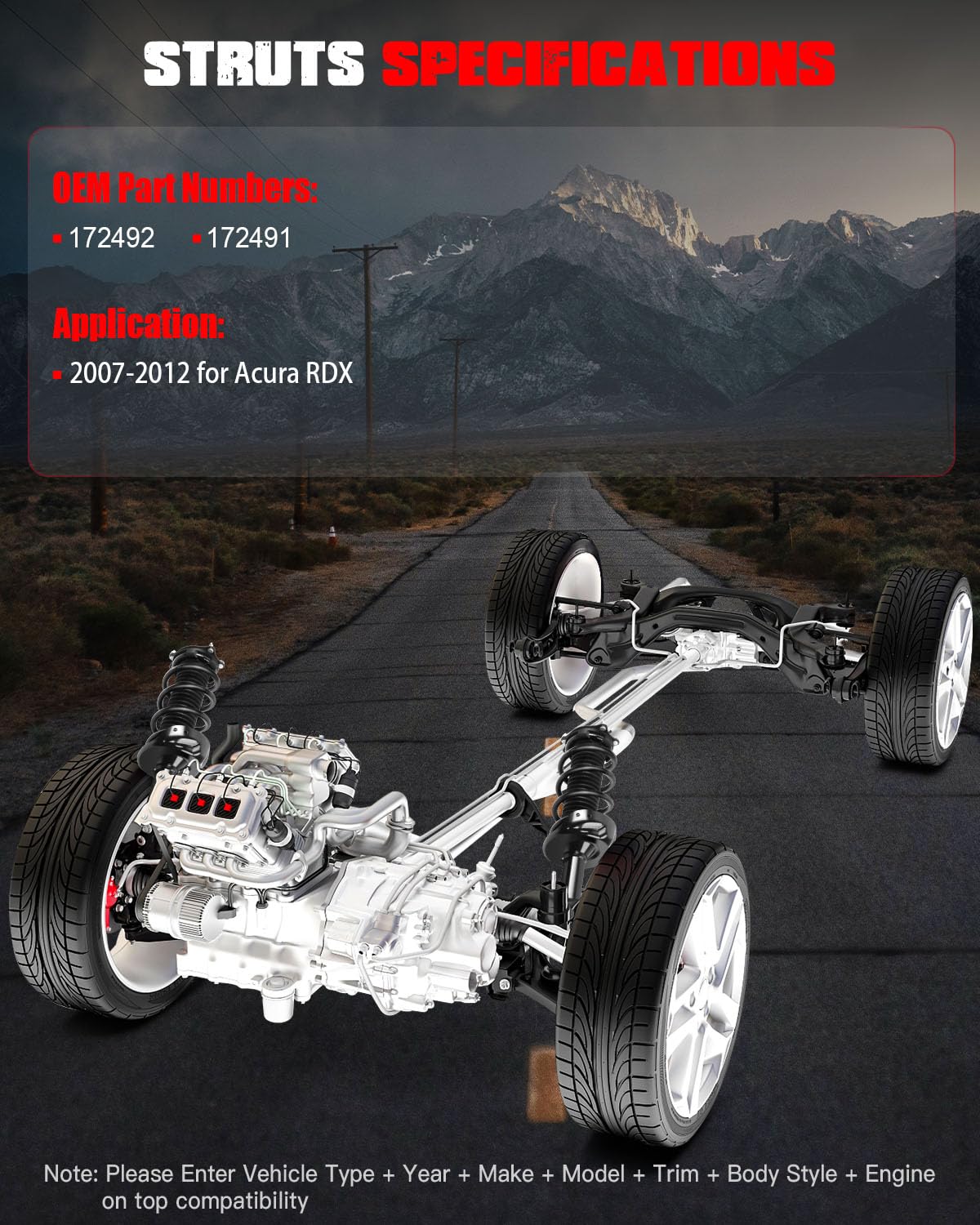 Resposta: Os Front Complete Struts são especificamente projetados para o Acura RDX de 2007 a 2012. Para outros modelos, consulte a compatibilidade antes da compra.
