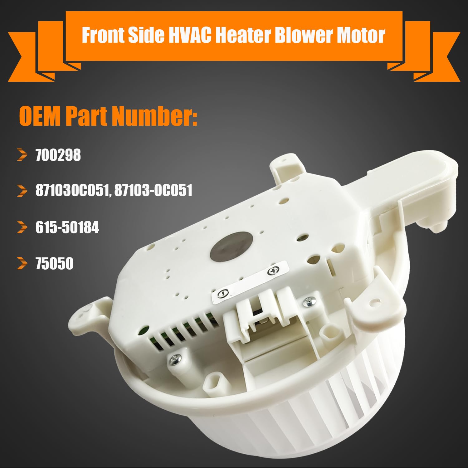 Número da Peça OEM: Este motor de ventilador HVAC atende aos padrões OEM, garantindo uma instalação rápida e fácil. Substitui os números de peça OE 700298, 871030C051, 87103-0C051, 615-50184 e 75050, oferecendo uma solução de mercado secundário eficaz para o seu motor de ventilador. Com isso, o motor opera de forma mais eficiente, fornecendo ar frio ou quente para os passageiros.