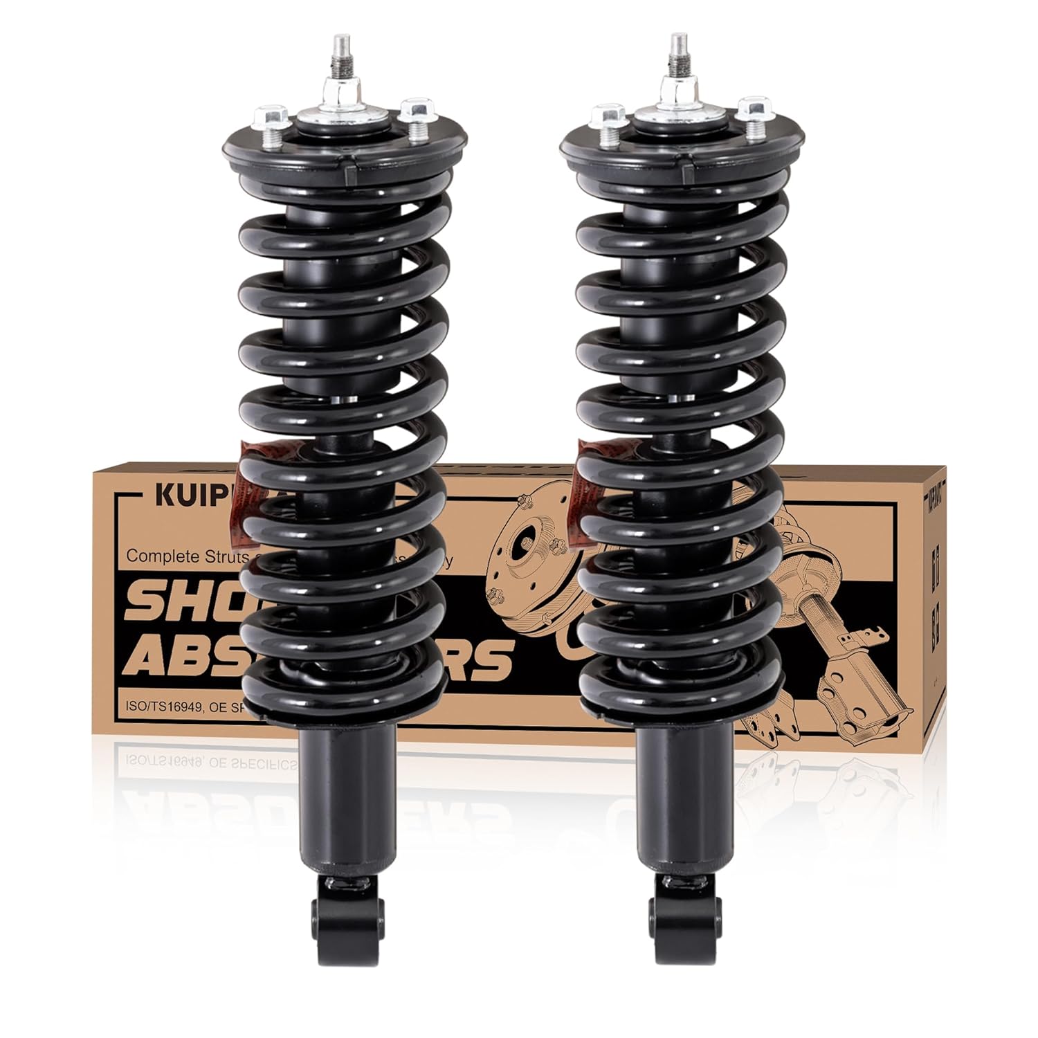 - [Instalação Fácil] O conjunto vem com amortecedores e molas helicoidais pré-montados, incluindo struts, molas, montagens, capas, kit de batente, assento da mola e isolador. Não são necessárias modificações. O trabalho meticuloso e o tamanho padrão atendem ao design original OE, garantindo uma instalação fácil e precisa.