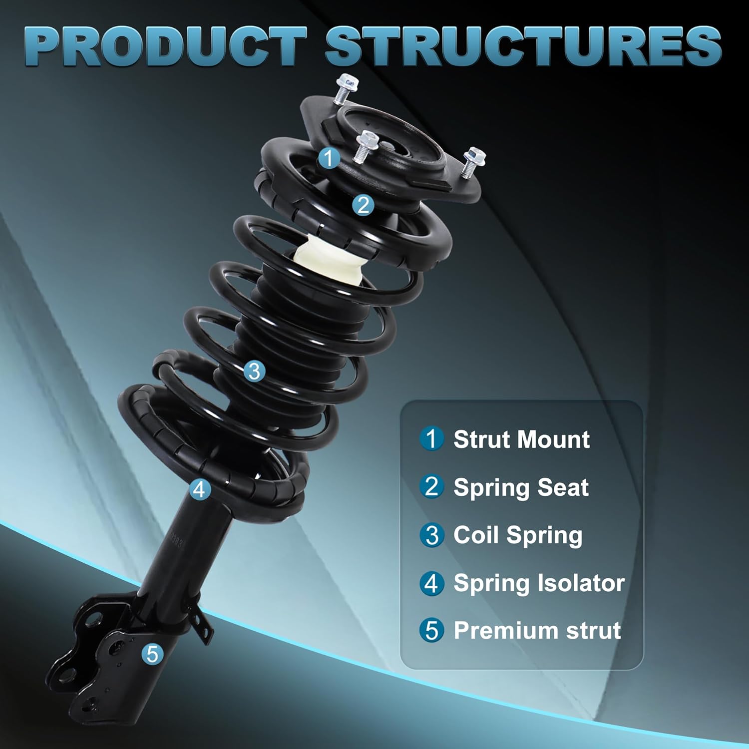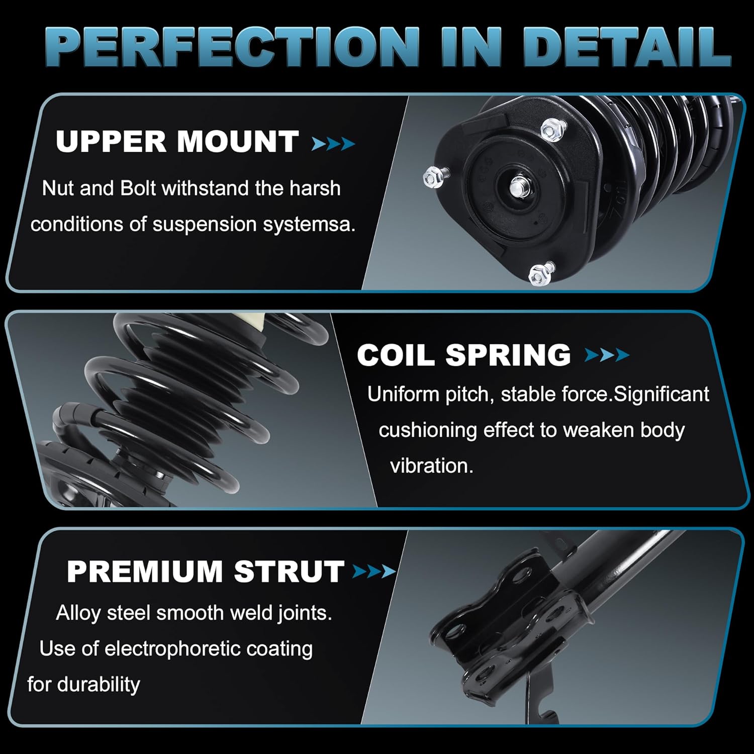 - Características dos Struts/Shocks: Padrão OE, testes profissionais múltiplos, ajuste preciso, substituição direta dos amortecedores originais. O alto teor de silício resiste à fadiga do metal, garantindo estabilidade e durabilidade; revestimento eletrostático, anti-corrosão e anti-oxidação.