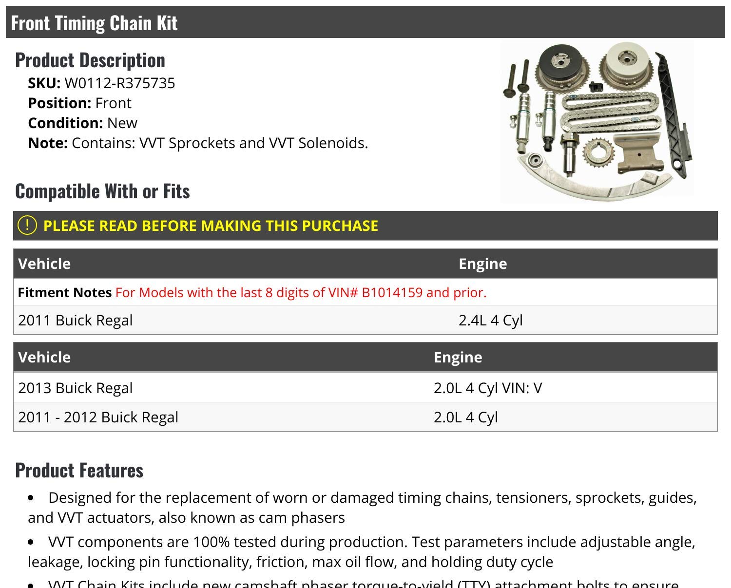 1 avaliação para Kit de Corrente de Distribuição Frontal com Sprockets e Solenoides de VVT – Compatível com Buick Regal 2011-2013
