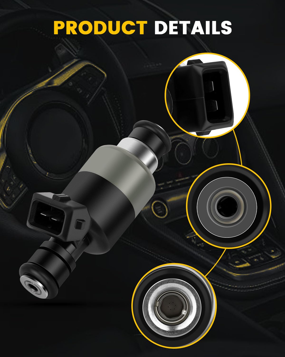 DIRECT INSTALLATION: O conjunto contém 4 injetores com 6 furos, projetados para uma instalação simples e direta. Isso proporciona uma experiência de condução mais estável e confortável, eliminando a necessidade de ajustes complexos.