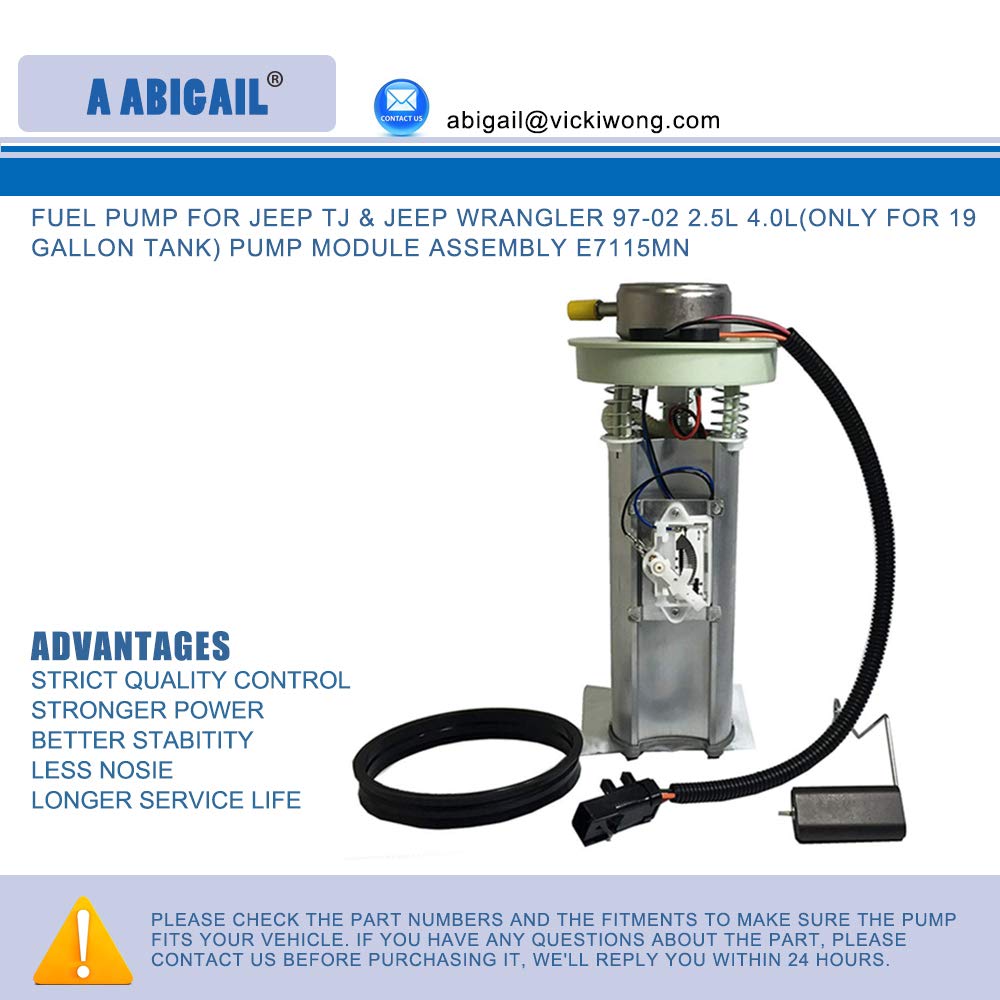 This fuel pump fit and work perfectly on my 1999 Jeep Tj with 15 gallon tank
