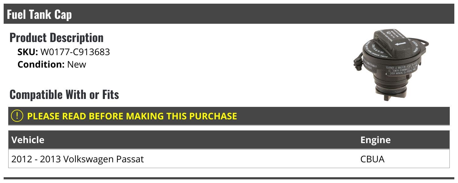 Descrição do Produto: Tampa do Tanque de Combustível – Compatível com Volkswagen Passat CBUA 2012-2013
