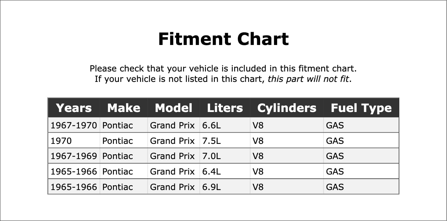 Resposta: Não, esta tampa foi projetada especificamente para os modelos Pontiac Grand Prix de 1965 a 1970. Verifique a galeria de imagens para confirmar a compatibilidade.