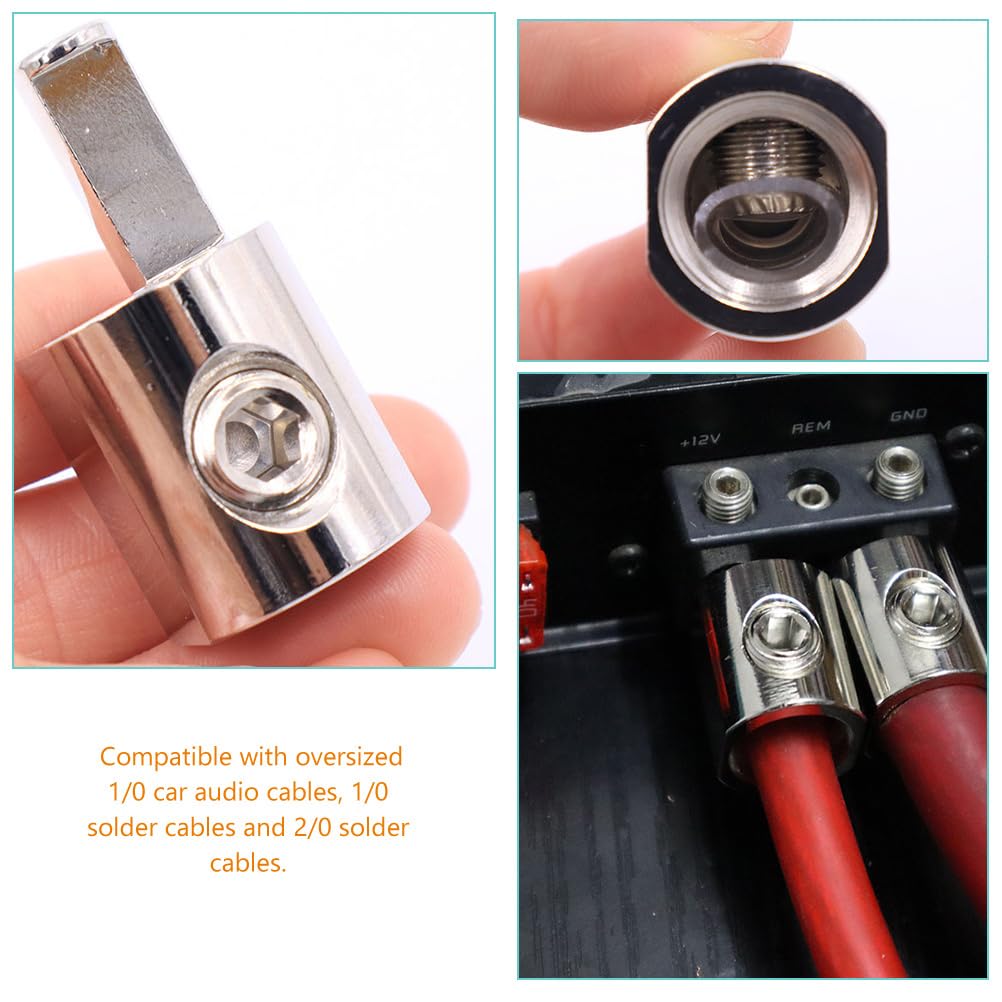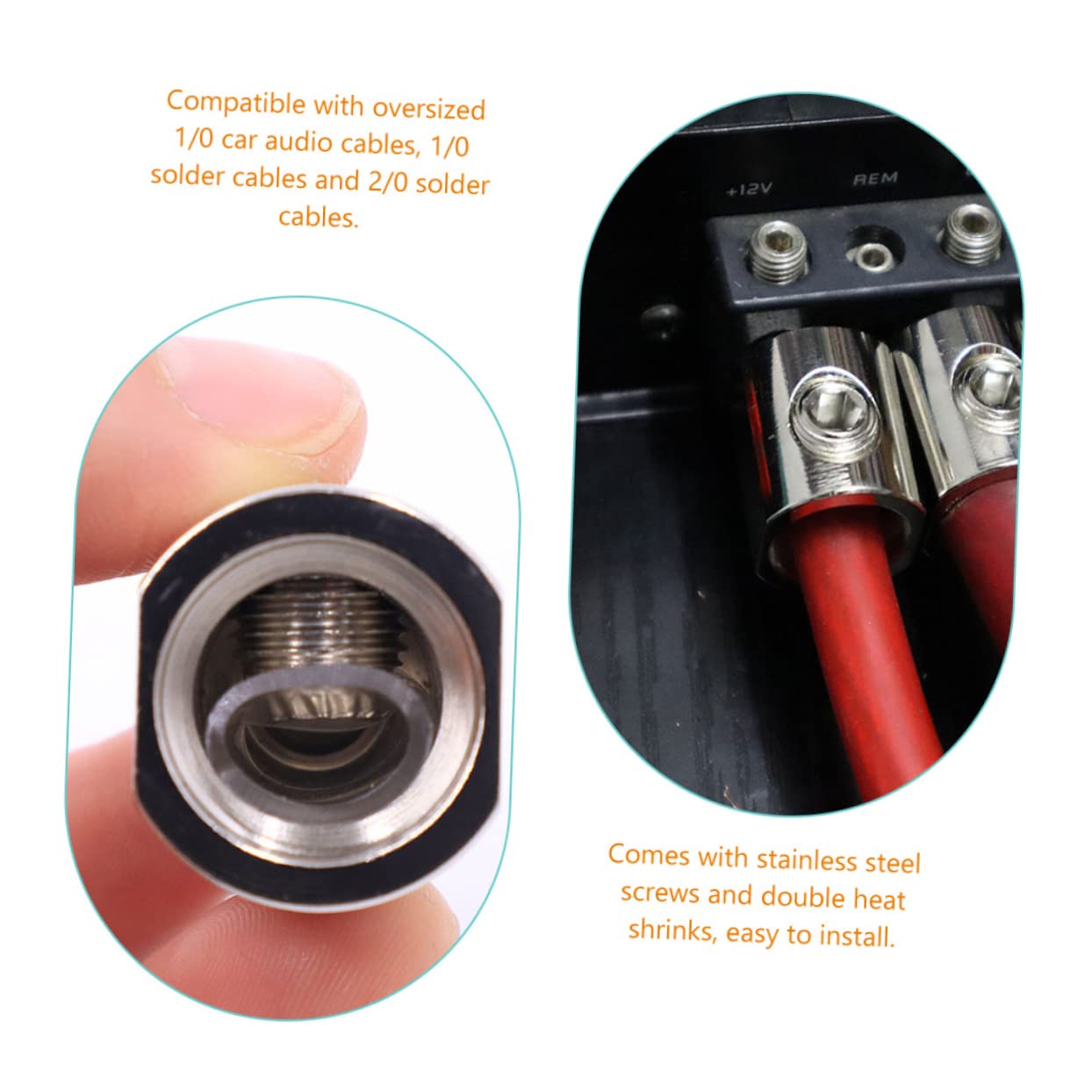 Descrição do Produto: Gadpiparty 2-Pack 1/0 Gauge to 4 Gauge Amp Input Reducer – Heavy Duty Brass Car Audio Power