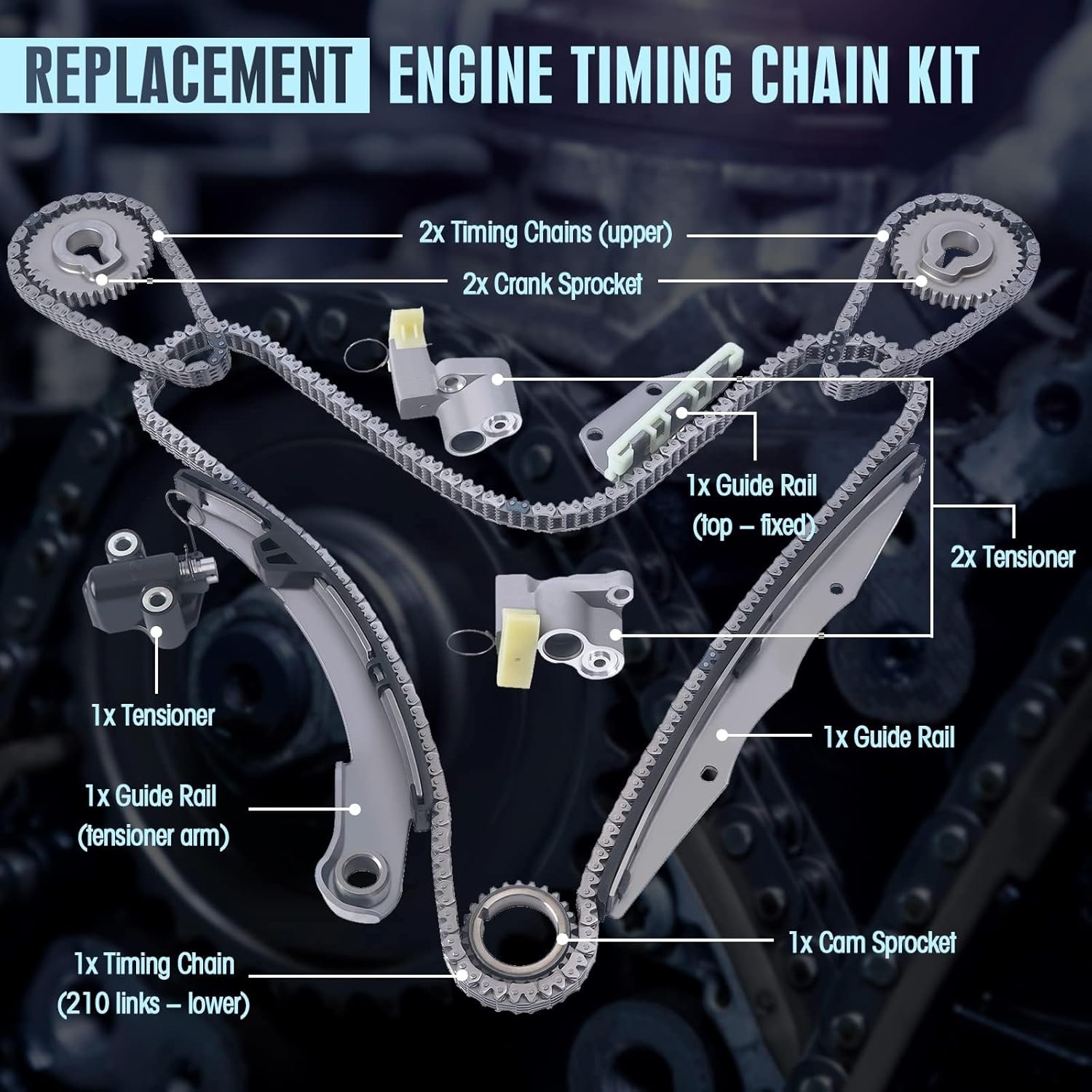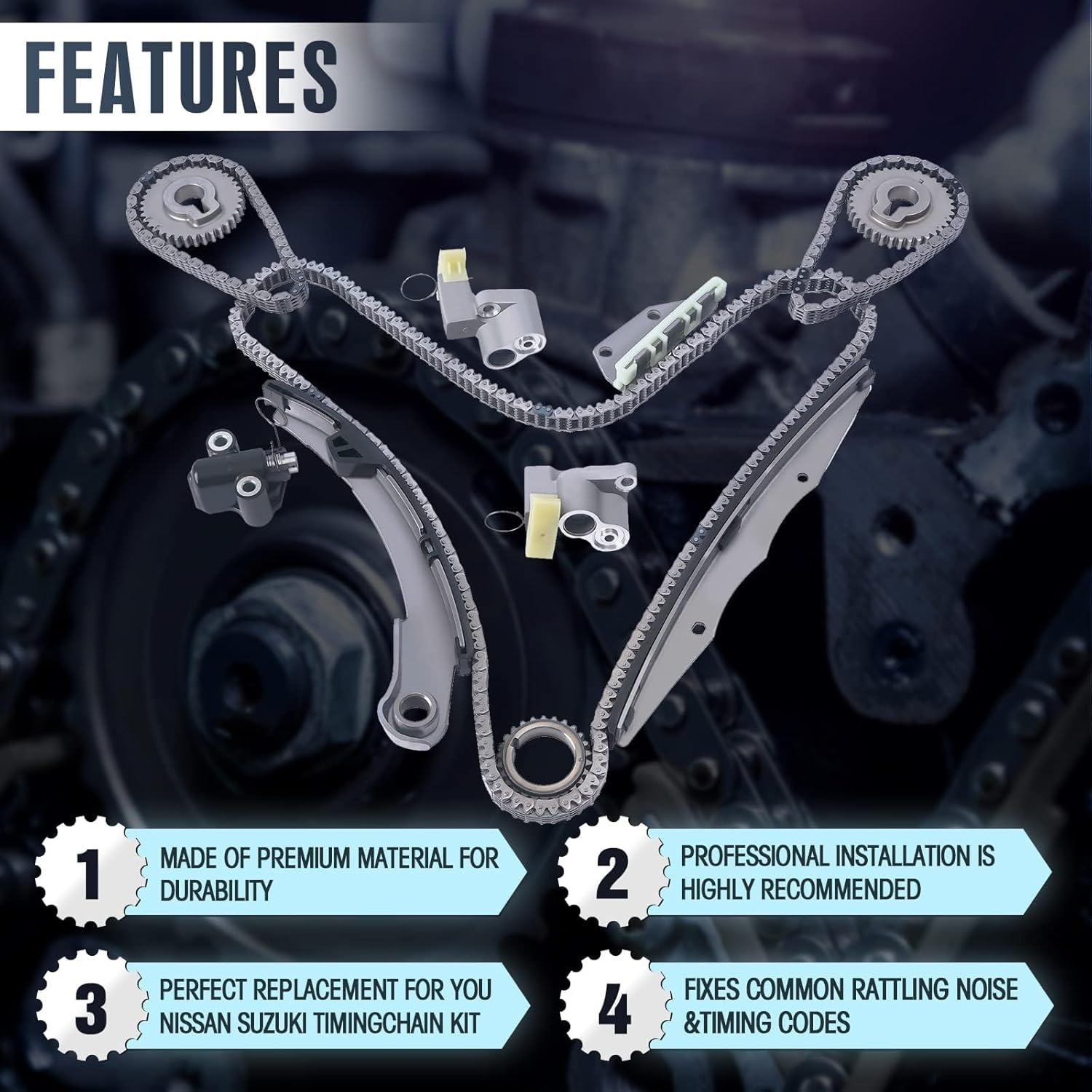 - Desempenho Aprimorado: Se você notar sinais como ruídos incomuns no motor, falhas na ignição, dificuldades para dar partida ou paradas repentinas, ou se a luz de verificação do motor acender no painel, é prudente inspecionar o kit de corrente de distribuição. Esses sintomas podem indicar problemas potenciais que exigem atenção imediata. Consulte um mecânico profissional para um diagnóstico preciso e reparo.