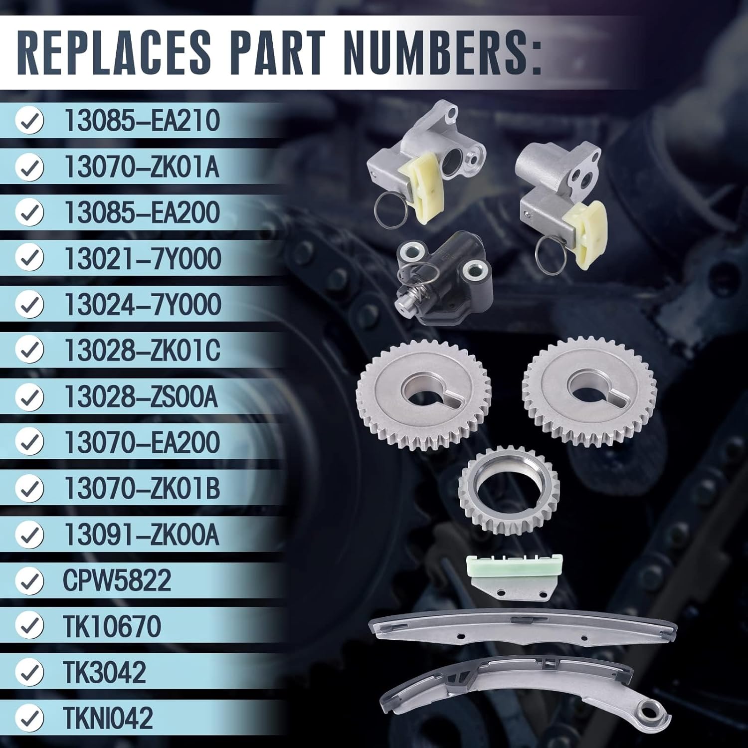 - Peças de Substituição: Inclui números de peças como 13085-EA210, 13070-ZK01A, 13085-EA200, 13021-7Y000, 13024-7Y000, 13028-ZK01C, 13028-ZS00A, 13070-EA200, 13070-ZK01B, 13091-ZK00A, CPW5822, TK10670, TK3042, TKNI042. Verifique o número da peça antes da compra para garantir a compatibilidade.