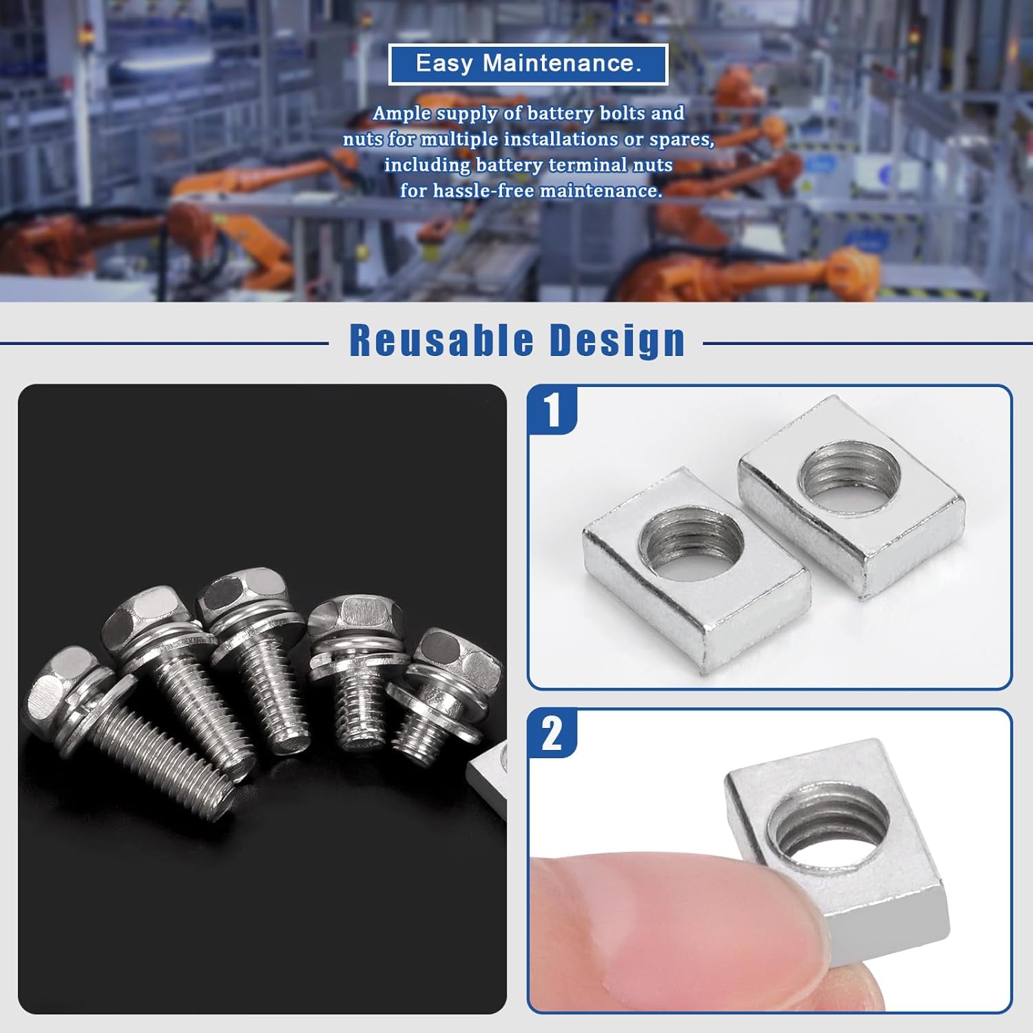 Além de serem ideais para baterias de motocicletas, esses parafusos e porcas quadradas são amplamente aplicáveis em diversas áreas, como marcenaria, melhorias residenciais e reparos de móveis. Sua versatilidade faz com que sejam indispensáveis para todas as suas necessidades de fixação.