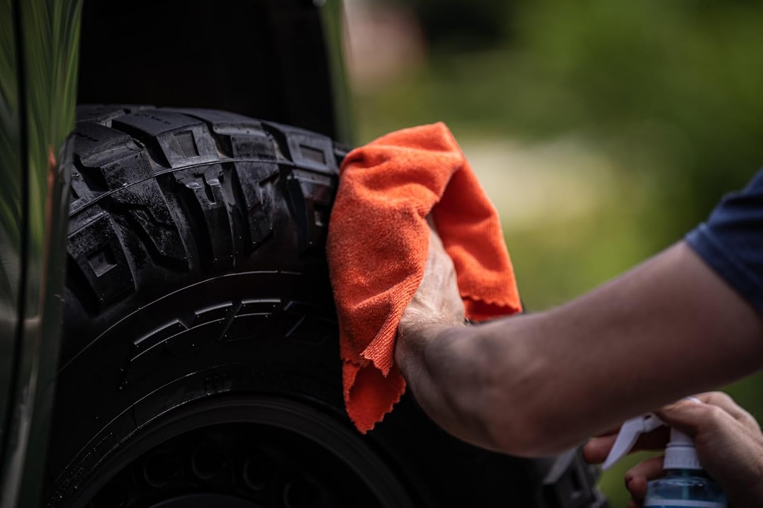 1. Certifique-se de que os pneus estejam limpos e secos antes da aplicação. Utilize um limpador de pneus para remover sujeira e resíduos.