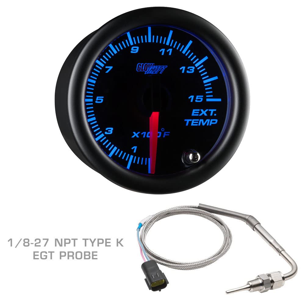 O pacote contém um medidor de pressão de turbo com capacidade de até 60 PSI, equipado com conexões de compressão 1/8-27 NPT, um tubo de nylon de 9 pés e um adaptador T-Fitting para a linha MAP. Além disso, inclui um medidor de temperatura de gases de escape (EGT) que suporta temperaturas de até 1500°F, com uma sonda EGT de 1/8-27 NPT, 3 pés de fio, um cabo de sensor de 6 pés e um cabo de alimentação de 2 pés. O terceiro medidor é o medidor de temperatura de transmissão, que também vem com um sensor de temperatura 1/8-27 NPT e um cabo de alimentação/sensor de 2 pés.