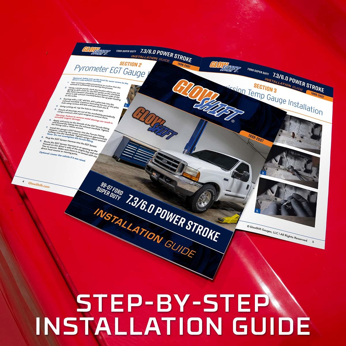 O GlowShift Diesel Gauge Package é a solução ideal para proprietários de caminhões Ford Super Duty F-250 e F-350 com motores 6.0L e 7.3L Power Stroke, fabricados entre 1999 e 2007. Este pacote inclui um Pilar Triplo na cor cinza, perfeitamente combinado com a estética do veículo, e um conjunto de três medidores da série Black 7 Color, que não só oferecem funcionalidade, mas também um visual moderno e sofisticado.