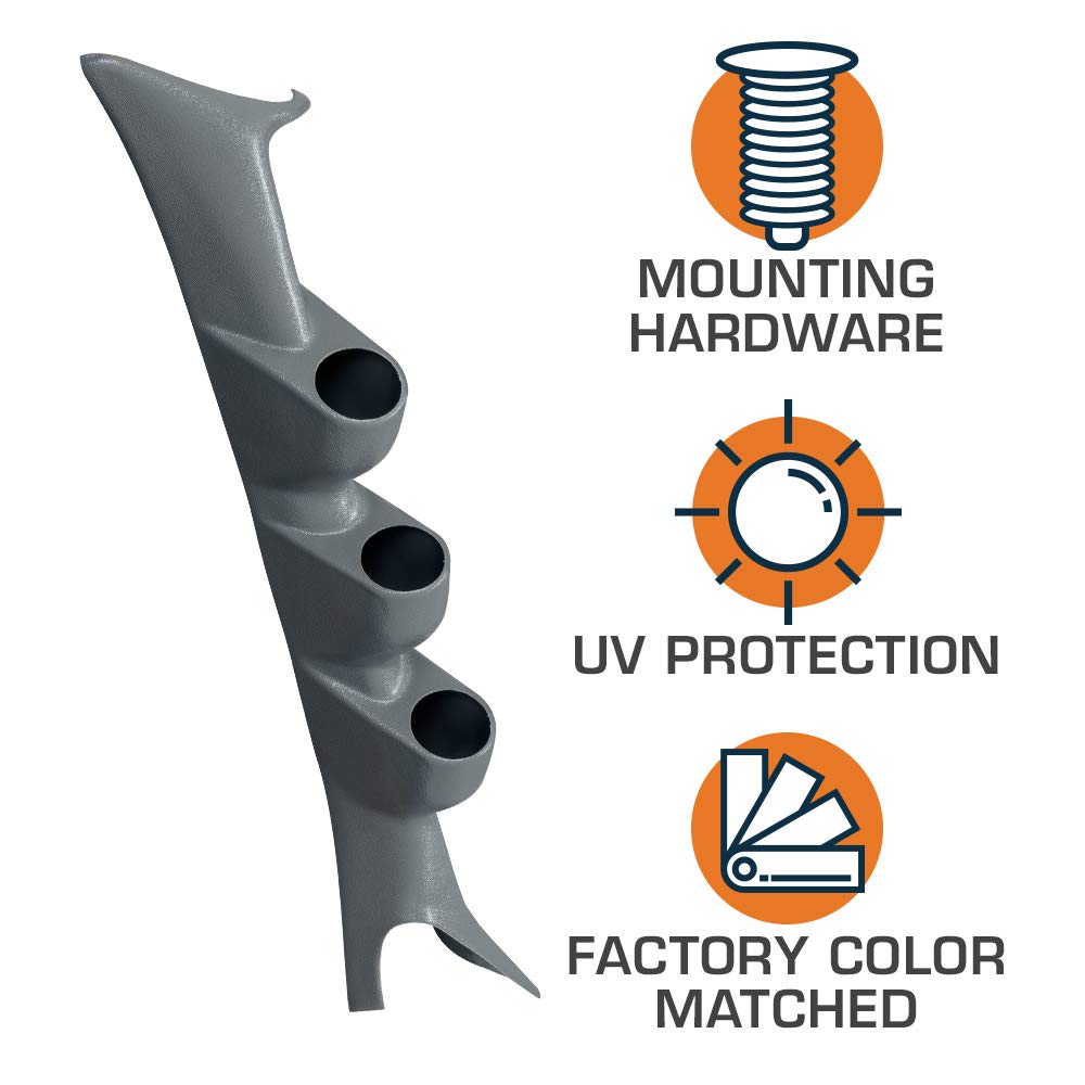 – Pilar Triplo: Cor cinza combinada, fabricado em plástico ABS, UV protegido, com design de sobreposição para montagem na coluna A.
