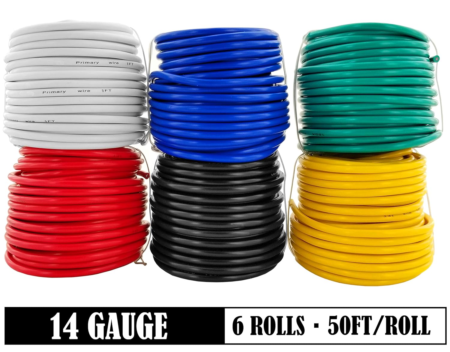 Descrição do Produto: GS Power 14 Gauge 6 Color Combo Automotive Low Voltage Primary Wire 50 ft Roll (300 ft Total)
