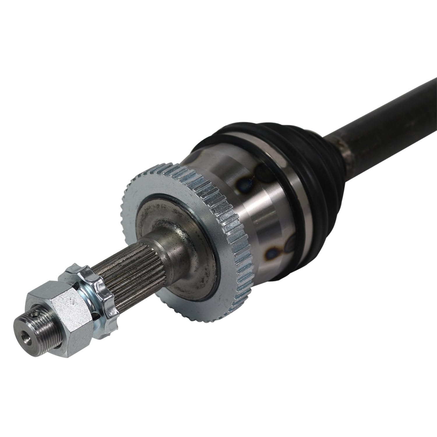 2. Remoção do Eixo Antigo: Levante o veículo com um macaco e remova a roda do lado do motorista. Desconecte o eixo CV antigo, soltando os parafusos da junta e a bota.